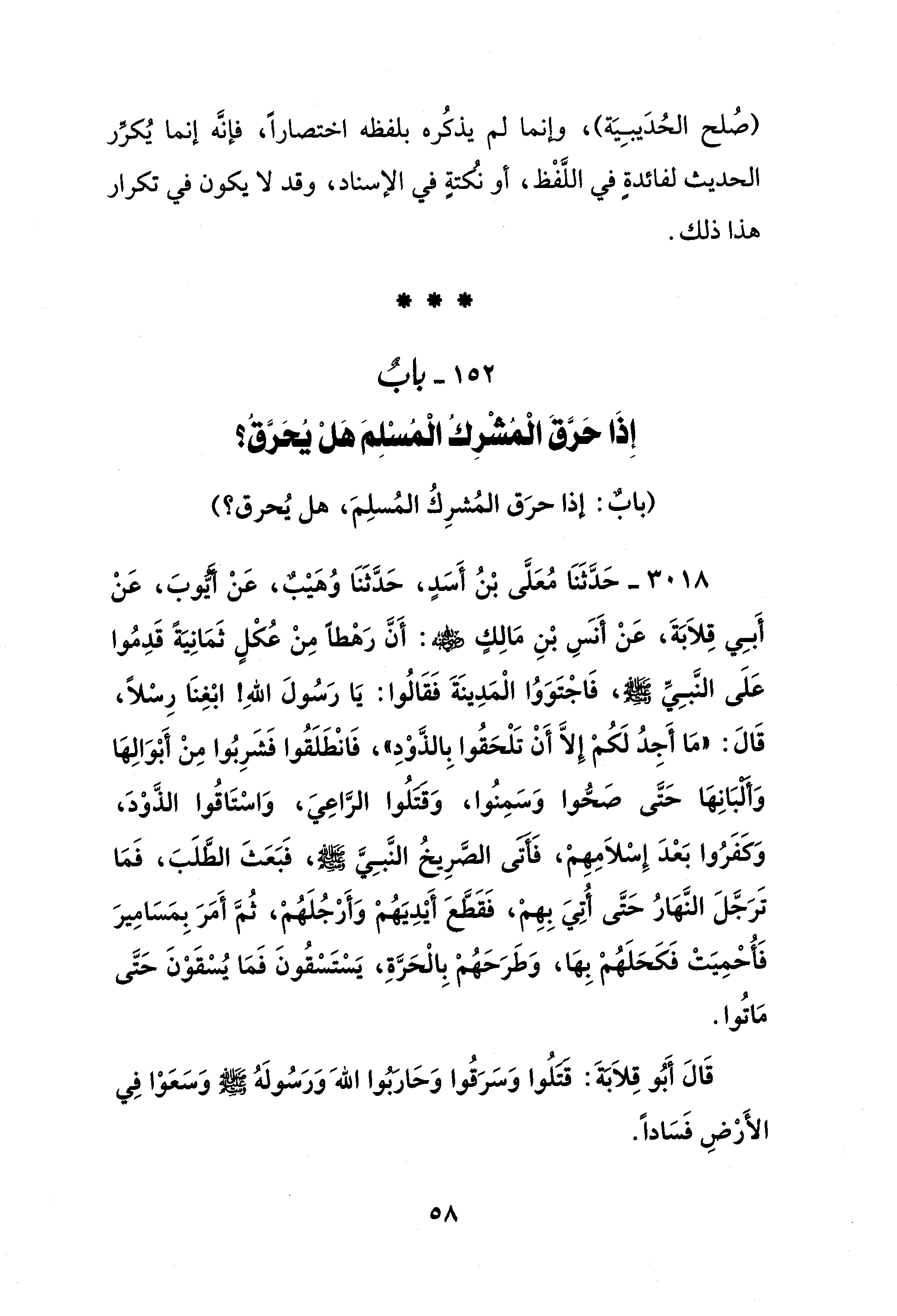 152 - بابٌ إِذَا حَرَّقَ الْمُشْرِكُ الْمُسْلِمَ هَلْ يُحَرَّقُ؟