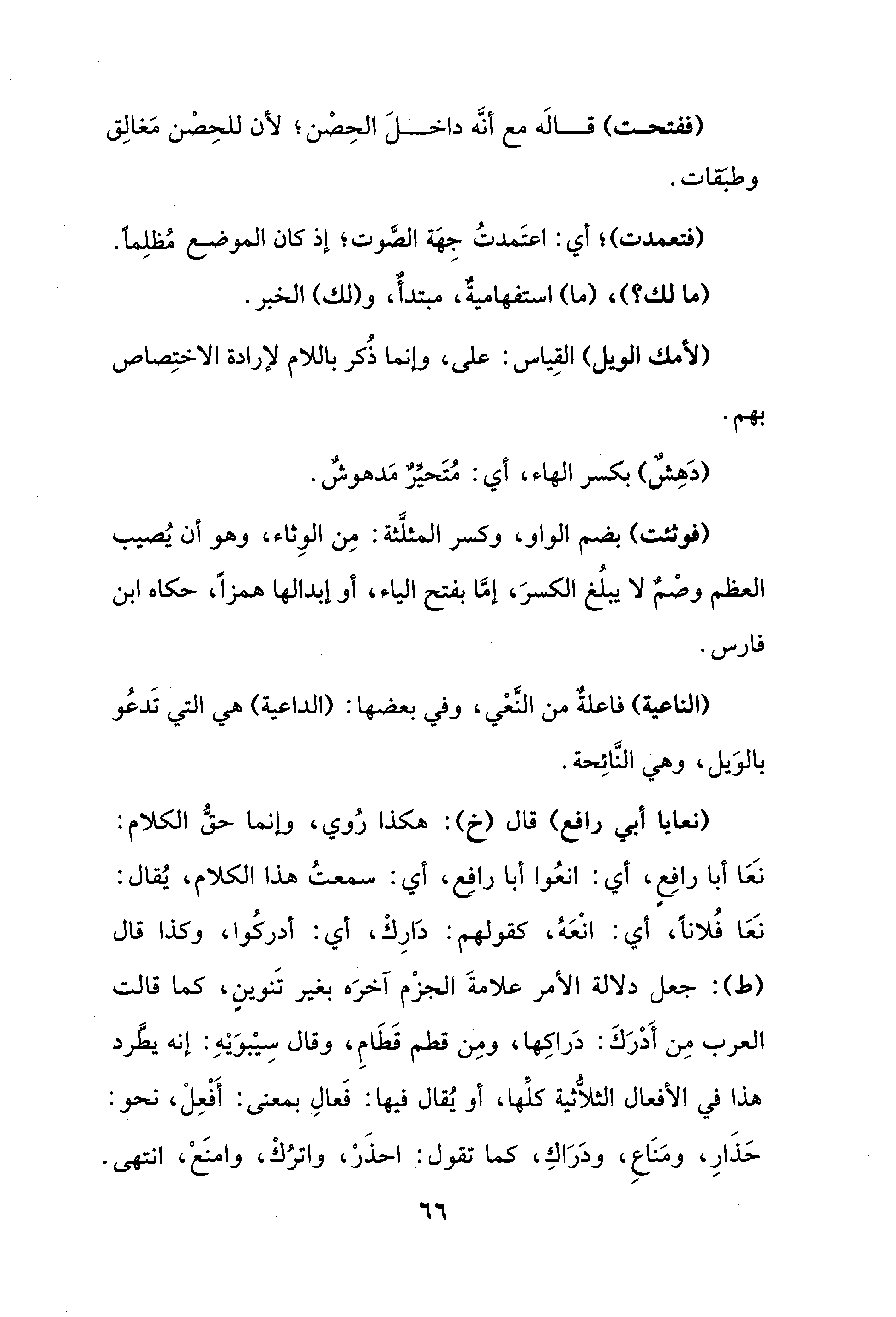 (نعايا أبي رافع) قال (خ): هكذا رُوي، وإنما حقُّ الكلام: نَعَا أبا رافِعٍ، أي: انعُوا أبا رافِع، أي: سمعتُ هذا الكلام، يُقال: نَعَا فُلانًا، أي: انْعَهُ، كقولهم: دَارِكْ، أي: أدركُوا، وكذا قال (ط): جعل دلالة الأمر علامةَ الجزْم آخرَه بغير تَنوينٍ، كما قالت العرب مِن أَدْرَكَ: دَراكِها، ومِن قطم قَطَامِ، وقال سِيْبوَيْهِ: إنه يطَّرد هذا في الأفعال الثلاثية كلِّها، أو يُقال فيها: فَعالِ بمعنى: أَفْعِلْ، نحو: حَذَارِ، ومَنَاعِ، ودَرَاكِ، كما تقول: احذَرْ، واترُكْ، وامنَعْ، انتهى.