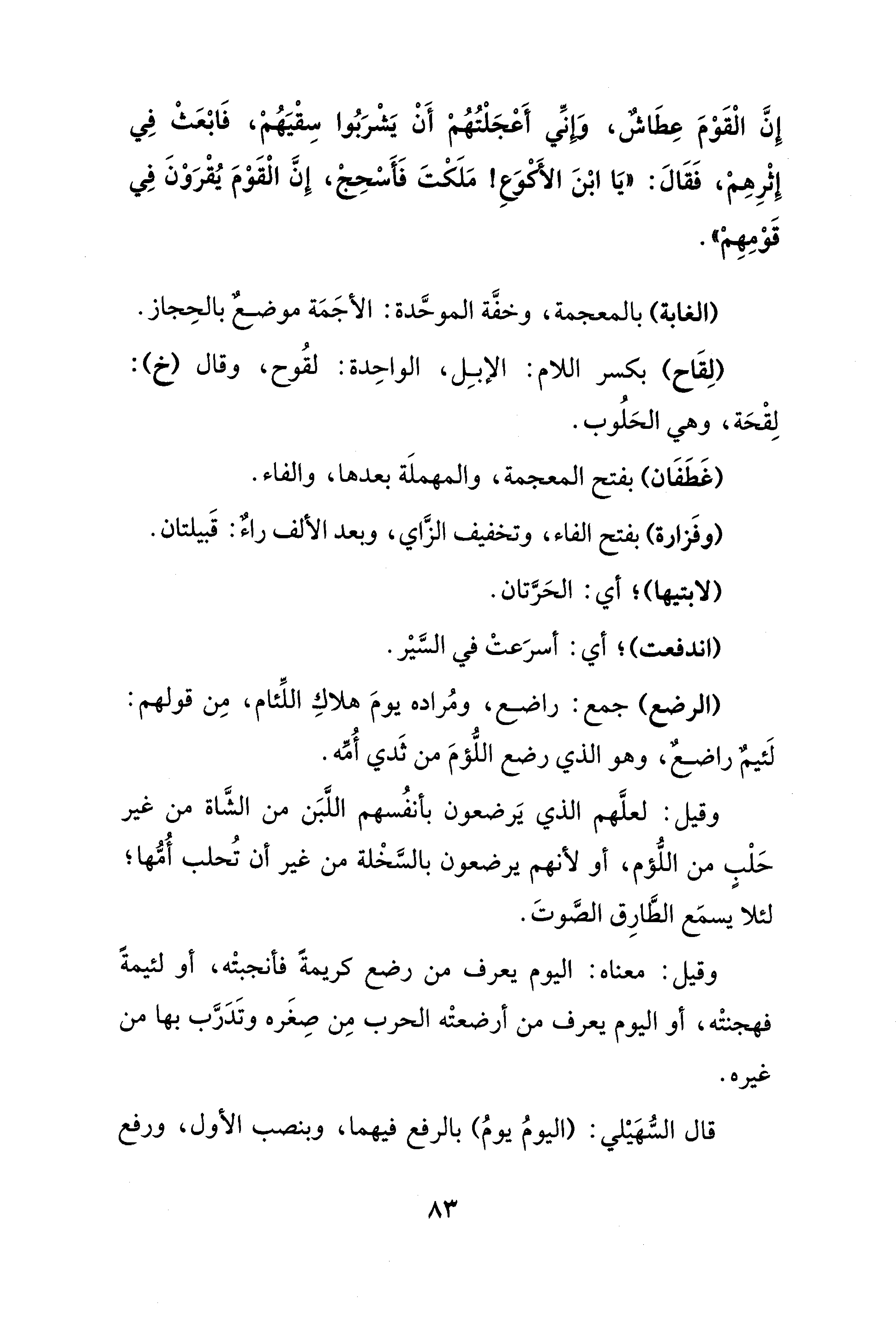 وقيل: لعلَّهم الذي يَرضعون بأنفُسهم اللَّبَن من الشَّاة من غير حَلْبٍ من اللُّؤم، أو لأنهم يرضعون بالشَّخْلة من غير أن تُحلب أُمُّها؛ لئلا يسمَع الطَّارِق الصَّوتَ.