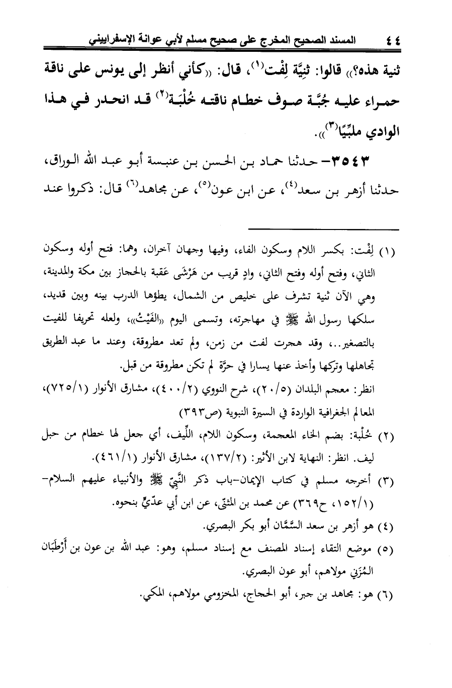 3543 - حدثنا حماد بن الحسن بن عنبسة أبو عبد الله الوراق، حدثنا أزهر بن سعد (¬1)، عن ابن عون (¬2)، عن مجاهد (¬3) قال: ذكروا عند