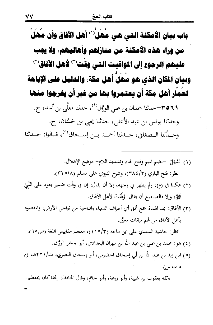 (¬3) الآفاق: بعد الهمزة جمع أفق أي أطراف الدنيا، والناحية من نواحي الأرض، والمقصود بأهل الآفاق من لهم ميقات معيَّن.