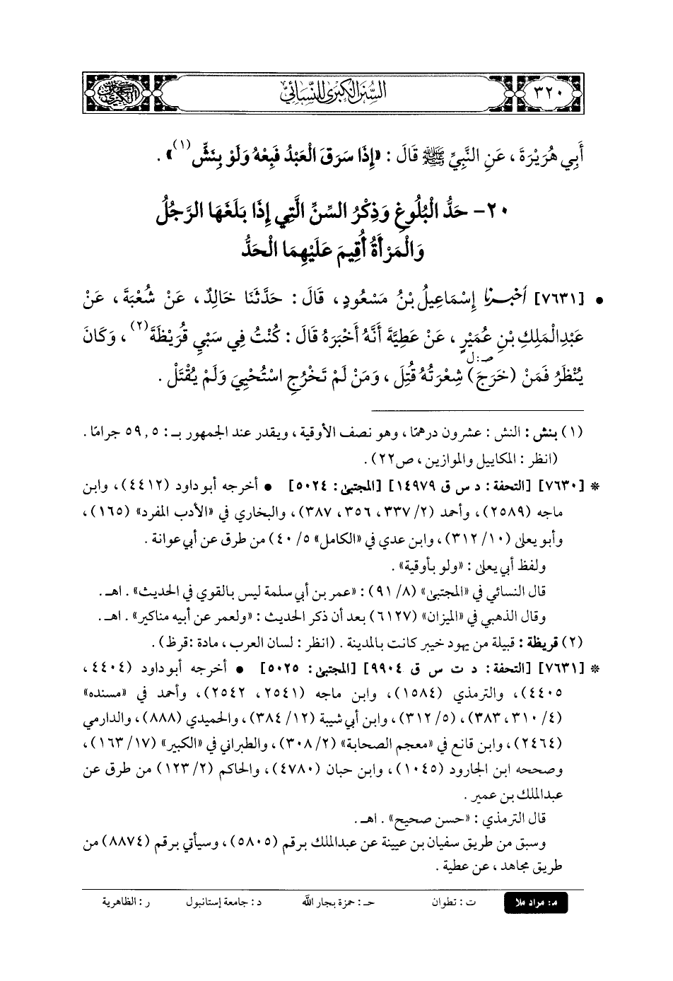 - حَدُّ البُلُوغِ وَذِكْرُ السِّنِّ الَّتِي إِذَا بَلَغَهَا الرَّجُلُ وَالمَرْأَةُ أُقِيمَ عَلَيْهِمَا الحَدُّ.