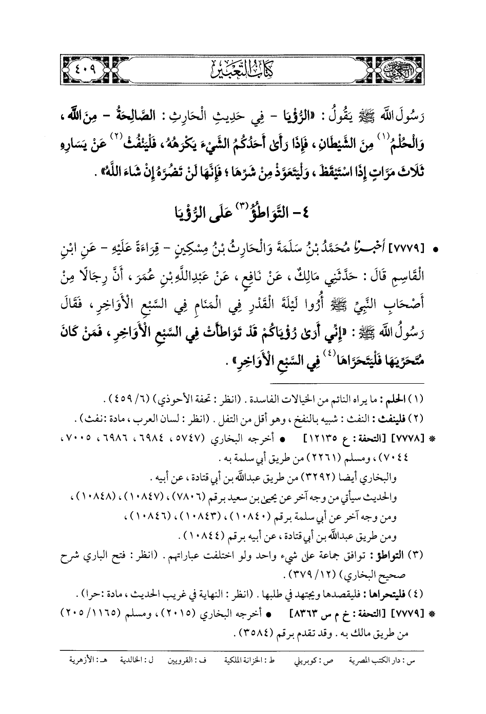 7779- أَخبَرنا مُحَمدُ بنُ سَلَمَةَ. وَالحَارِثُ بنُ مِسْكِينٍ، قِرَاءَةً عَلَيْهِ، عَنِ ابْنِ القَاسِمِ، قَالَ: حَدَّثني مَالِكٌ، عَن نَافِعٍ، عَن عَبدِ اللهِ بنِ عُمَرَ، أَنَّ رِجَالاً مِنْ أَصْحَابِ النَّبيِّ صَلى الله عَلَيهِ وسَلم أُرُوا لَيْلَةَ القَدْرِ فِي المَنَامِ, فِي السَّبْعِ الأَوَاخِرِ، فَقَالَ رَسُولُ اللهِ صَلى الله عَلَيهِ وسَلم: إِنِّي أَرَى رُؤْيَاكُمْ قَدْ تَوَاطَأَتْ فِي السَّبْعِ الأَوَاخِرِ، فَمَنْ كَانَ مُتَحَرِّيَهَا، فَلْيَتَحَرَّاهَا فِي السَّبْعِ الأَوَاخِر.