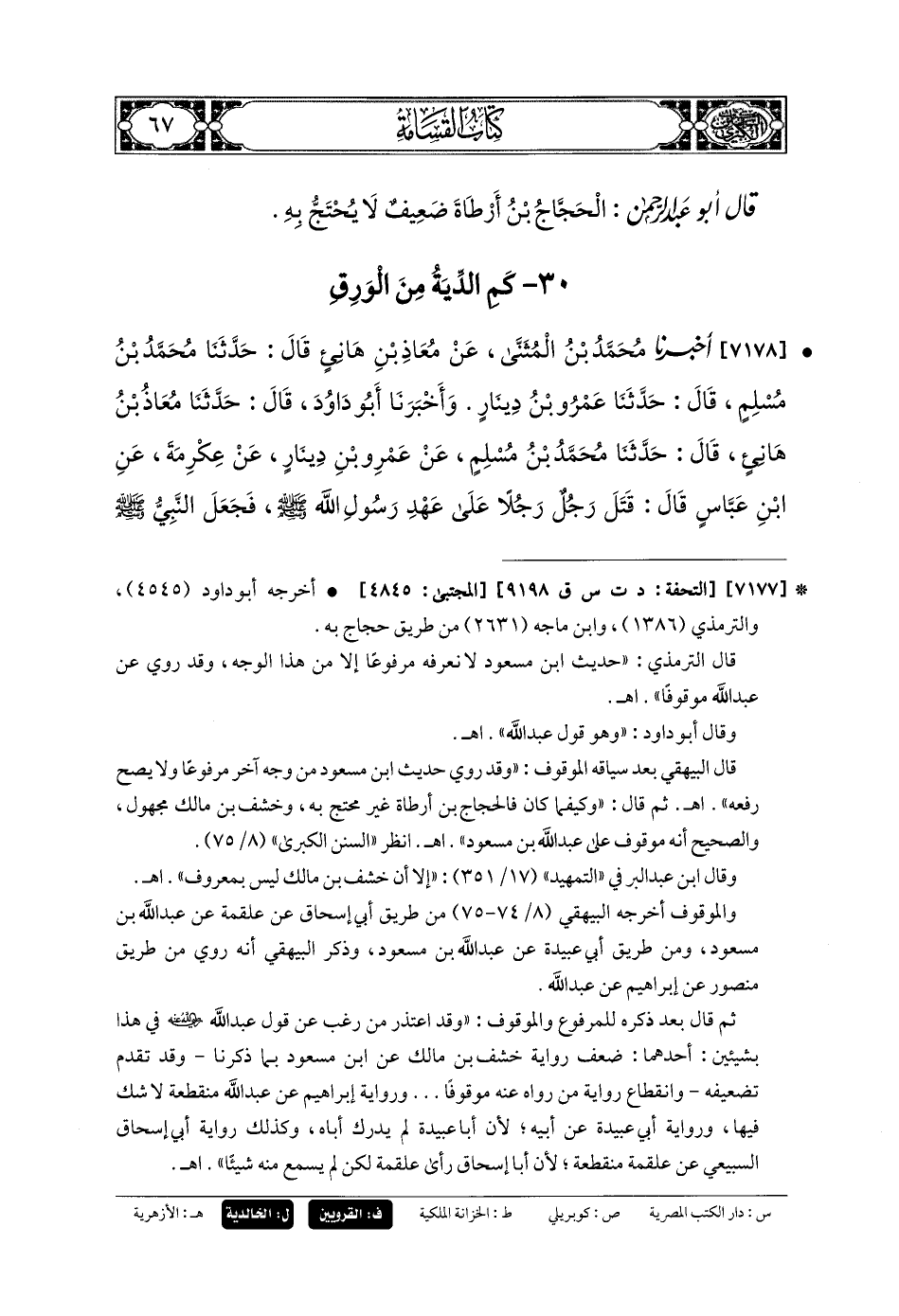 30- كَمِ الدِّيَةُ مِنَ الوَرِقِ.