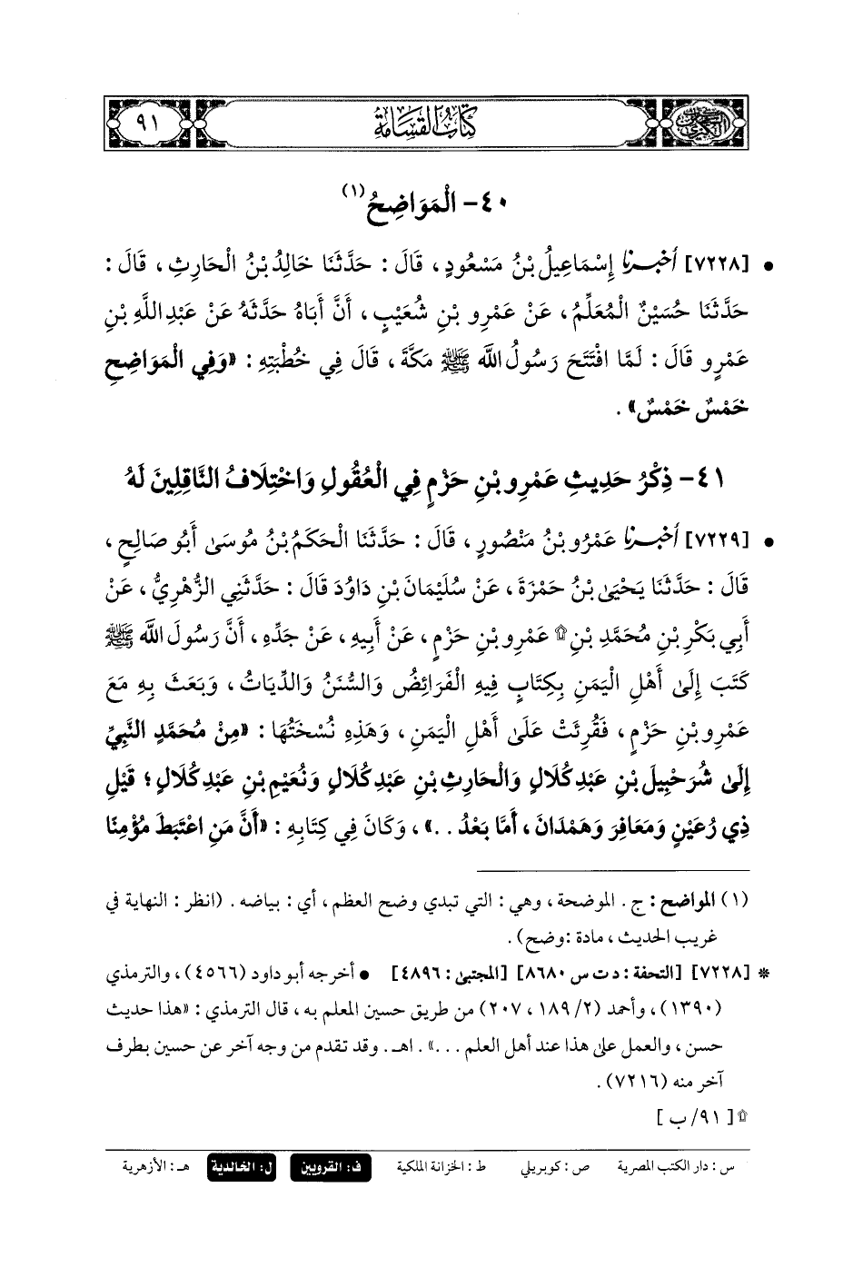 41 - ذِكْرُ حَدِيثِ عَمْرِو بنِ حَزْمٍ فِي العُقُولِ وَاخْتِلافِ النَّاقِلِينَ لَهُ.
