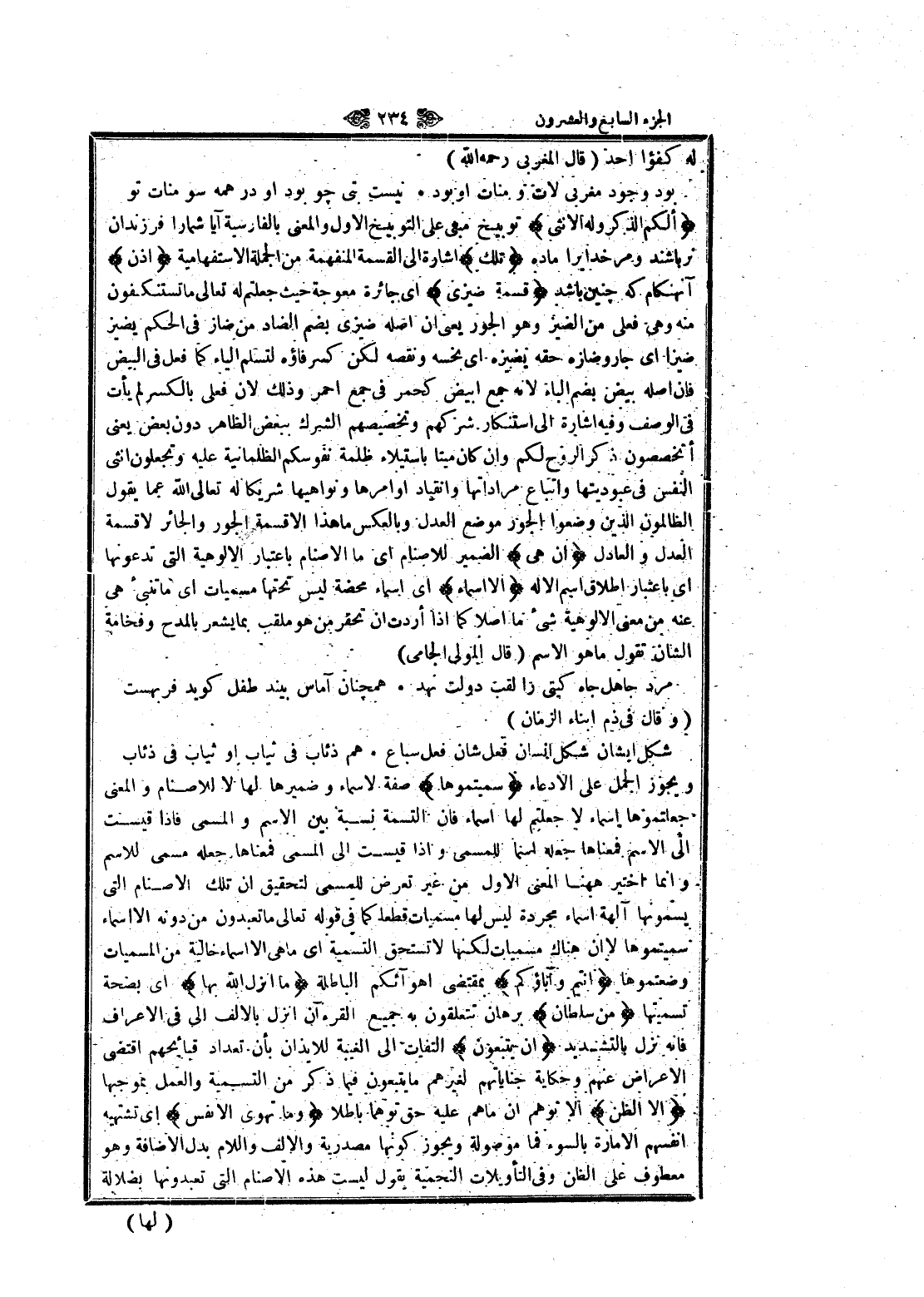أَلَكُمُ الذَّكَرُ وَلَهُ الْأُنْثى توبيخ مبنى على التوبيخ الاول والمعنى بالفارسية آيا شما را فرزندان نر باشند ومر خدايرا ماده تِلْكَ اشارة الى القسمة المنفهمة من الجملة الاستفهامية إِذاً آن هنگام كه چنين باشد قِسْمَةٌ ضِيزى اى جائرة معوجة حيث جعلتم له تعالى ما تستنكفون منه وهى فعلى من الضيز وهو الجور يعنى ان أصله ضيزى بضم الضاد من ضاز في الحكم يضيز ضيزا اى جار وضازه حقه يضيزه اى بخسه ونقصه لكن كسر فاؤه لتسلم الياء كما فعل في البيض فان أصله بيض بضم الباء لانه جمع ابيض كحمر في جمع احمر وذلك لان فعلى بالكسر لم يأت فى الوصف وفيه اشارة الى استنكار شركهم وتخصيصهم الشرك ببعض الظاهر دون بعض يعنى أتخصصون ذكر الروح لكم وان كان ميتا باستيلاء ظلمة نفوسكم الظلمانية عليه وتجعلون أنثى النفس في عبوديتها واتباع مراداتها وانقياد اوامرها ونواهيها شريكا له تعالى الله عما يقول الظالمون الذين وضعوا الجور موضع العدل وبالعكس ما هذا إلا قسمة الجور والجائر لا قسمة العدل والعادل إِنْ هِيَ الضمير للاصنام اى ما الأصنام باعتبار الالوهية التي تدعونها اى باعتبار اطلاق اسم الإله إِلَّا أَسْماءٌ اى اسماء محضة ليس تحتها مسميات اى ما تنبئ هى عنه من معنى الالوهية شيء ما أصلا كما إذا أردت ان تحقر من هو ملقب بما يشعر بالمدح وفخامة الشان تقول ما هو الاسم (قال المولى الجامى)