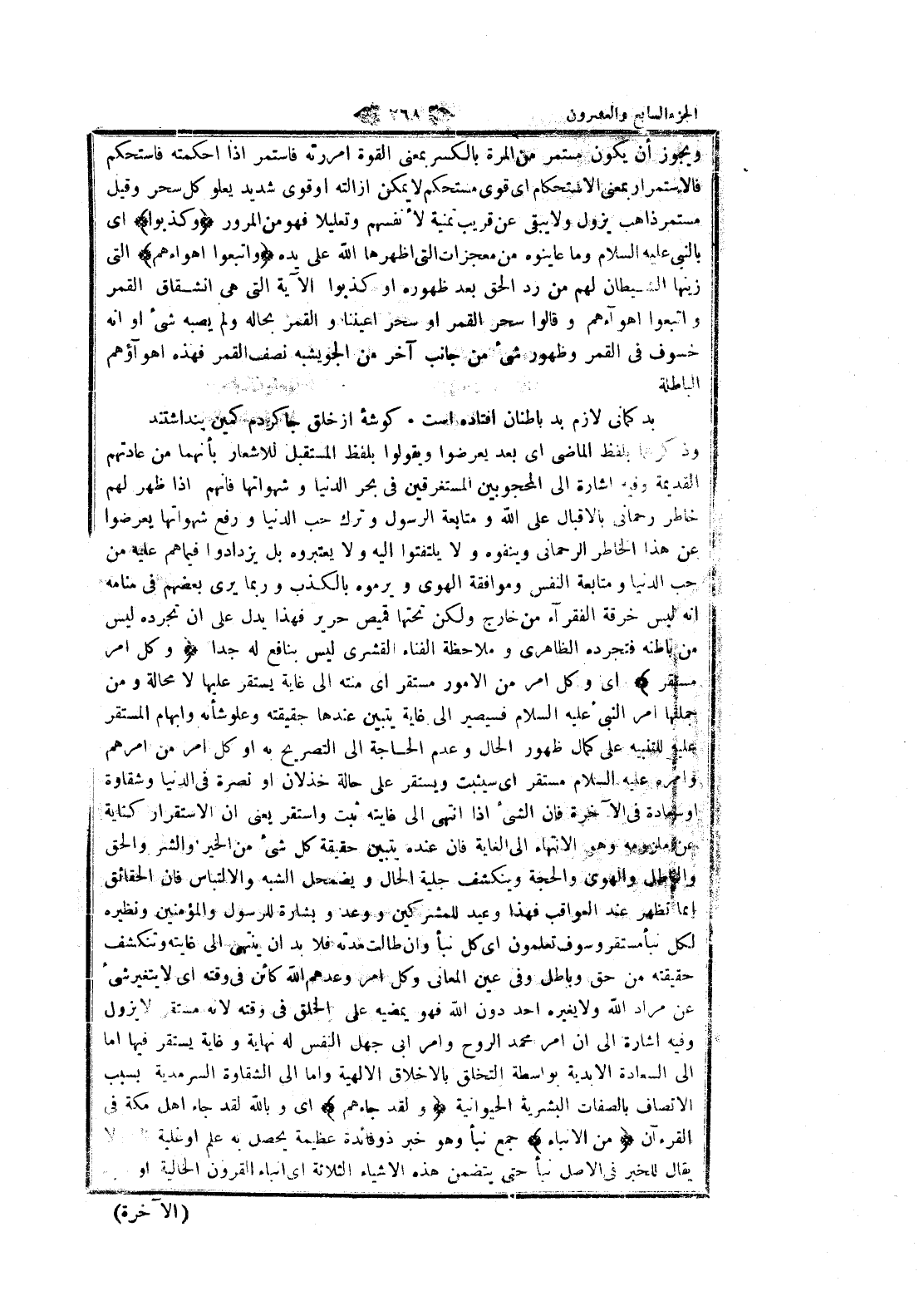 وذكرهما بلفظ الماضي اى بعد يعرضوا ويقولوا بلفظ المستقبل للاشعار بأنهما من عادتهم القديمة وفيه اشارة الى المحجوبين المستغرقين في بحر الدنيا وشهواتها فانهم إذا ظهر لهم خاطر رحمانى بالإقبال على الله ومتابعة الرسول وترك حب الدنيا ورفع شهواتها يعرضوا عن هذا الخاطر الرحمانى وينفوه ولا يلتفتوا اليه ولا يعتبروه بل يزدادوا فيماهم عليه من حب الدنيا ومتابعة النفس وموافقة الهوى ويرموه بالكذب وربما يرى بعضهم في منامه انه لبس خرقة الفقراء من خارج ولكن تحتها قميص حرير فهذا يدل على ان تجرده ليس من باطنه فتجرده الظاهري وملاحظة الفناء القشرى ليس بنافع له جدا وَكُلُّ أَمْرٍ مُسْتَقِرٌّ اى وكل امر من الأمور مستقر اى منته الى غاية يستقر عليها لا محالة ومن جملتها امر النبي عليه السلام فسيصير الى غاية يتبين عندها حقيقته وعلو شأنه وإبهام المستقر عليه للتنبيه على كمال ظهور الحال وعدم الحاجة الى التصريح به او كل امر من أمرهم وامره عليه السلام مستقر اى سيثبت ويستقر على حالة خذلان او نصرة في الدنيا وشقاوة او سعادة في الآخرة فان الشيء إذا انتهى الى غايته ثبت واستقر يعنى ان الاستقرار كناية عن ملزومه وهو الانتهاء الى الغاية فان عنده يتبين حقيقة كل شيء من الخير والشر والحق والباطل والهوى والحجة وينكشف جلية الحال ويضمحل الشبه والالتباس فان الحقائق انما تظهر عند العواقب فهذا وعيد للمشركين ووعد وبشارة للرسول والمؤمنين ونظيره لكل نبأ مستقر وسوف تعلمون اى كل نبأ وان طالت مدته فلا بد ان ينتهى الى غايته وتنكشف حقيقته من حق وباطل وفي عين المعاني وكل امر وعدهم الله كائن في وقته اى لا يتغير شيء عن مراد الله ولا يغيره أحد دون الله فهو يمضيه على الخلق في وقته لانه مستقر لا يزول وفيه اشارة الى ان امر محمد الروح وامر ابى جهل النفس له نهاية وغاية يستقر فيها اما الى السعادة الابدية بواسطة التخلق بالأخلاق الالهية واما الى الشقاوة السرمدية بسبب الاتصاف بالصفات البشرية الحيوانية وَلَقَدْ جاءَهُمْ اى وبالله لقد جاء اهل مكة في القرآن مِنَ الْأَنْباءِ جمع نبأ وهو خبر ذو فائدة عظيمة يحصل به علم او غلبة ظن ولا يقال للخبر في الأصل نبأ حتى يتضمن هذه الأشياء الثلاثة اى انباء القرون الخالية او انباء