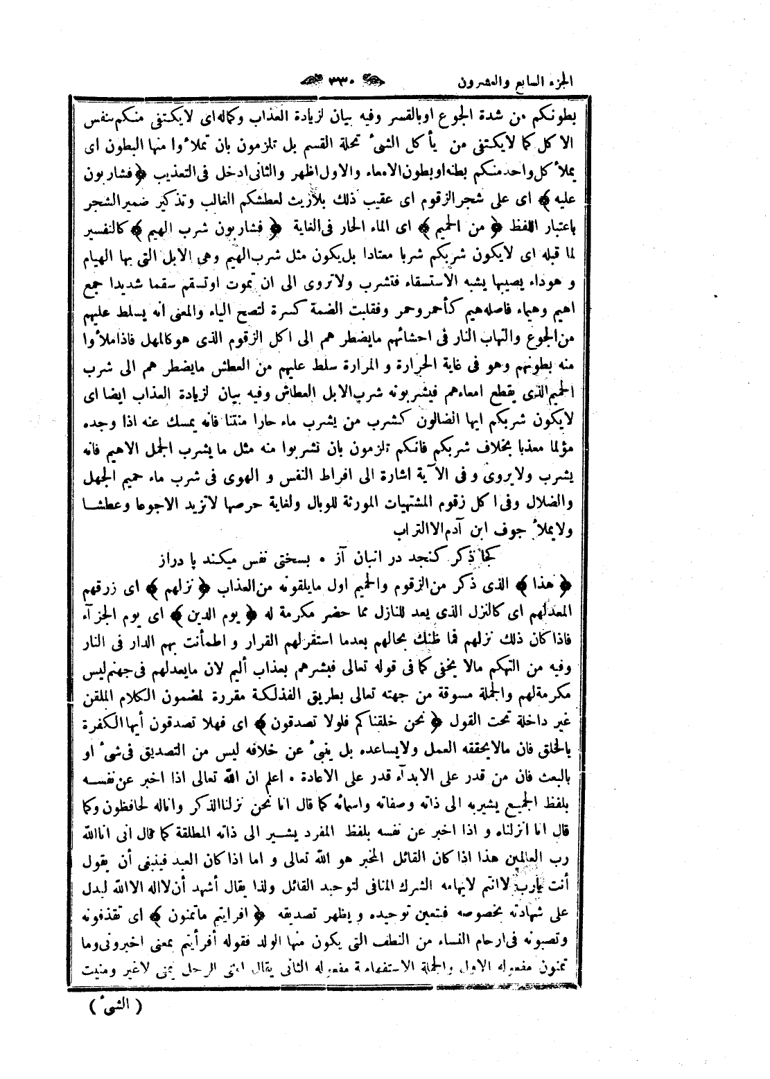 بطونكم من شدة الجوع او بالقسر وفيه بيان لزيادة العذاب وكماله اى لا يكتفى منكم بنفس الاكل كما لا يكتفى من يأكل الشيء تحلة القسم بل تلزمون بان تملأوا منها البطون اى يملأكل واحد منكم بطنه او بطون الأمعاء والاول اظهر والثاني ادخل في التعذيب فَشارِبُونَ عَلَيْهِ اى على شجر الزقوم اى عقيب ذلك بلا ريث لعطشكم الغالب وتذكير ضمير الشجر باعتبار اللفظ مِنَ الْحَمِيمِ اى الماء الحار في الغاية فَشارِبُونَ شُرْبَ الْهِيمِ كالتفسير لما قبله اى لا يكون شربكم شربا معتادا بل يكون مثل شرب الهيم وهى الإبل التي بها الهيام وهوداء يصيبها يشبه الاستسقاء فتشرب ولا تروى الى ان تموت او تسقم سقما شديدا جمع اهيم وهيماء فاصله هيم كأحمر وحمر وفقلبت الضمة كسرة لتصح الياء والمعنى انه يسلط عليهم من الجوع والتهاب النار في احشائهم ما يضطرهم الى أكل الزقوم الذي هو كالمهل فاذا ملأوا منه بطونهم وهو في غاية الحرارة والمرارة سلط عليهم من العطش ما يضطرهم الى شرب الحميم الذي يقطع أمعاءهم فيشربونه شرب الإبل العطاش وفيه بيان لزيادة العذاب ايضا اى لا يكون شربكم ايها الضالون كشرب من يشرب ماء حارا منتنا فانه يمسك عنه إذا وجده مؤلما معذبا بخلاف شربكم فانكم تلزمون بان تشربوا منه مثل ما يشرب الجمل الأهيم فانه يشرب ولا يروى وفي الآية اشارة الى افراط النفس والهوى في شرب ماء حميم الجهل والضلال وفي أكل زقوم المشتهيات المورثة للوبال ولغاية حرصها لا تزيد الا جوعا وعطشا ولا يملأ جوف ابن آدم الا التراب