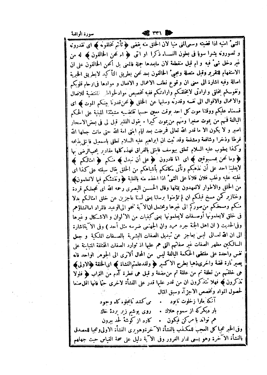 وفي الخبر عجبا كل العجب للمكذب بالنشأة الآخرة وهو يرى النشأة الاولى وعجبا للمصدق بالنشأة الآخرة وهو يسعى لدار الغرور وفي الآية دليل على صحة القياس حيث جهلهم