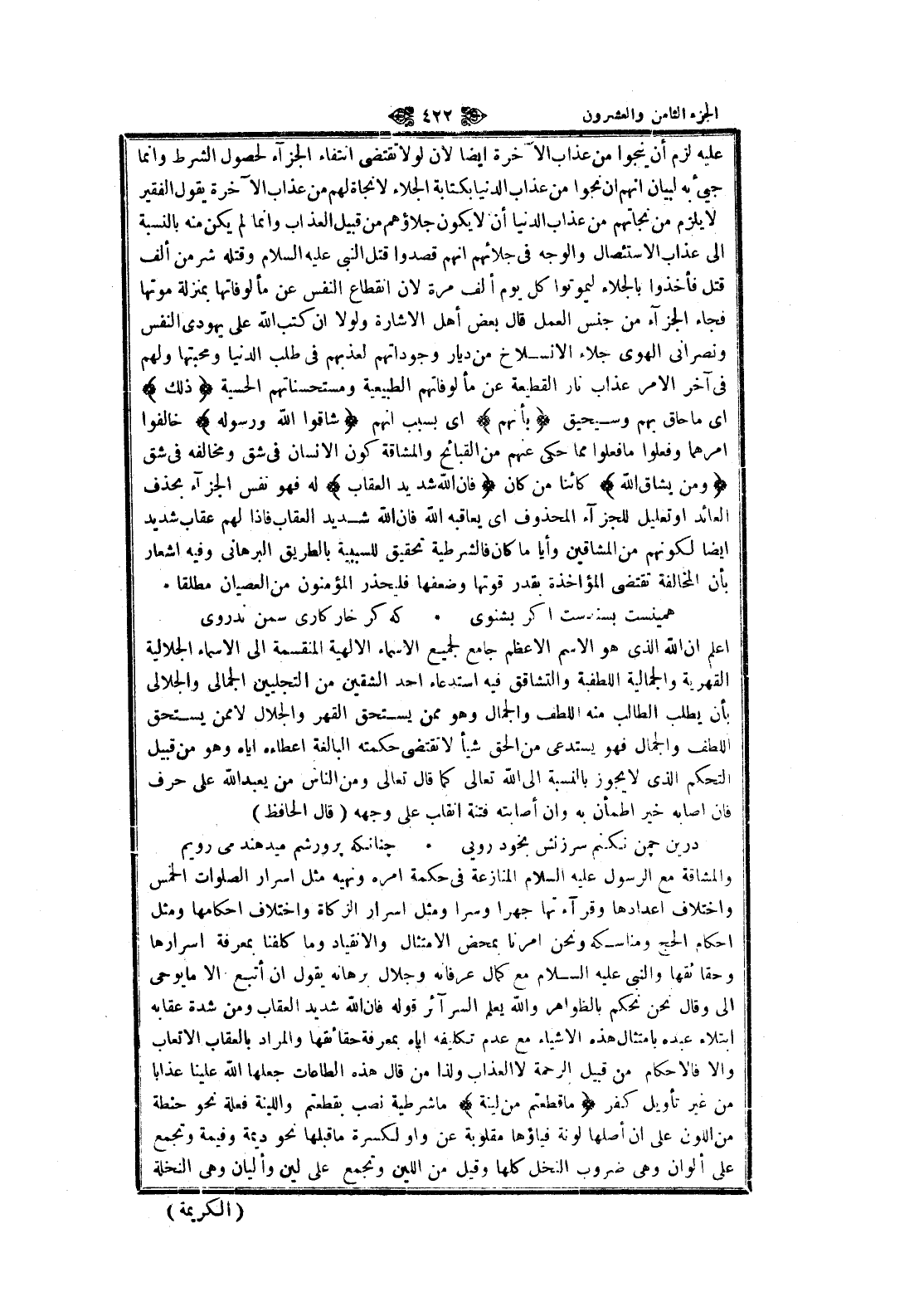 اعلم ان الله الذي هو الاسم الأعظم جامع لجميع الأسماء الالهية المنقسمة الى الأسماء الجلالية القهرية والجمالية اللطفية والتشاقق فيه استدعاء أحد الشقين من التجليين الجمالي والجلالي بأن يطلب الطالب منه اللطف والجمال وهو ممن يستحق القهر والجلال لاممن يستحق اللطف والجمال فهو يستدعى من الحق شيأ لا تقتضى حكمته البالغة إعطاءه إياه وهو من قبيل التحكم الذي لا يجوز بالنسبة الى الله تعالى كما قال تعالى ومن الناس من يعبد الله على حرف فان أصابه خير اطمأن به وان أصابته فتنة انقلب على وجهه (قال الحافظ)