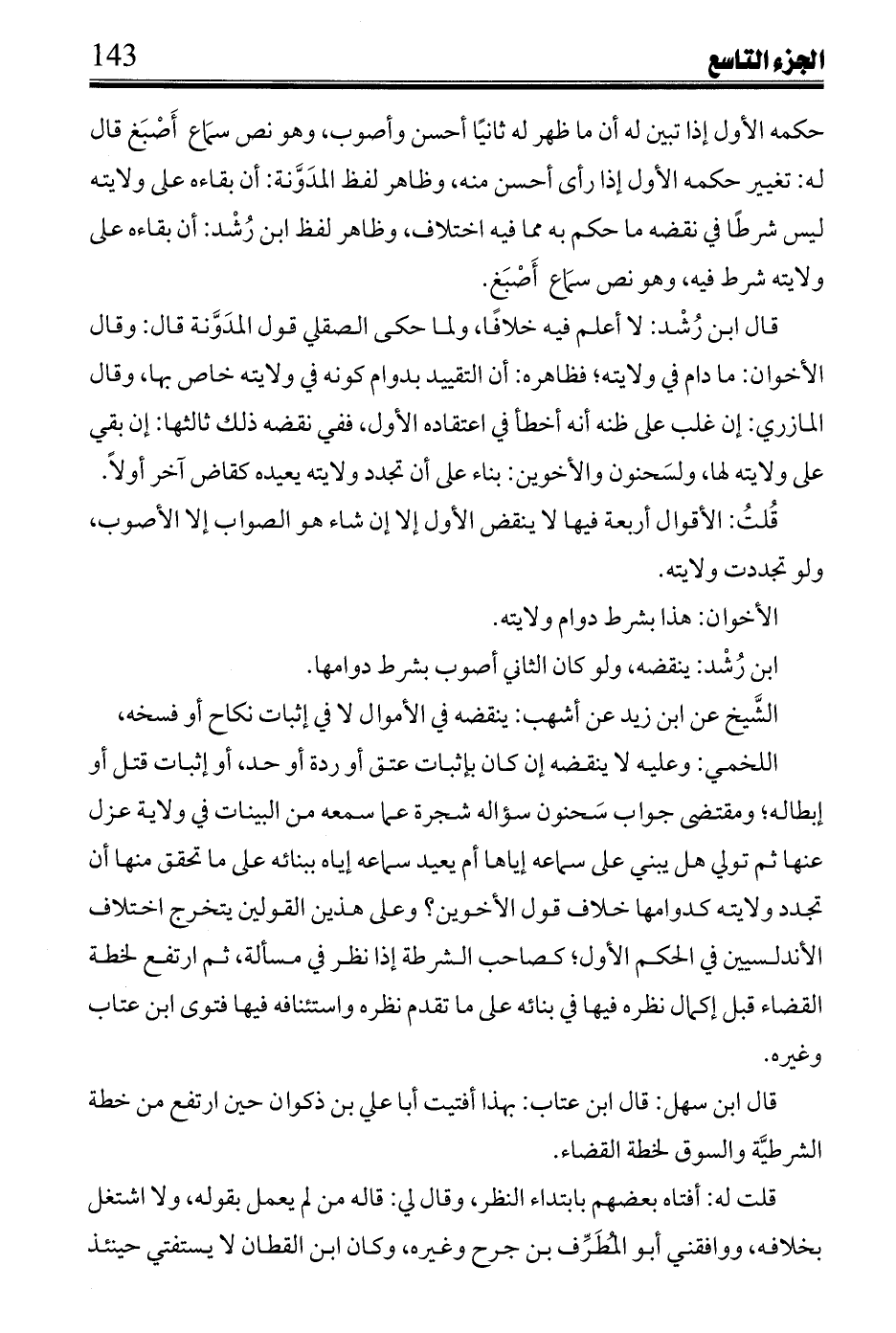 قال ابن سهل: قال ابن عتاب: بهذا أفتيت أبا علي بن ذكوان حين ارتفع من خطة الشرطية والسوق لخطة القضاء.