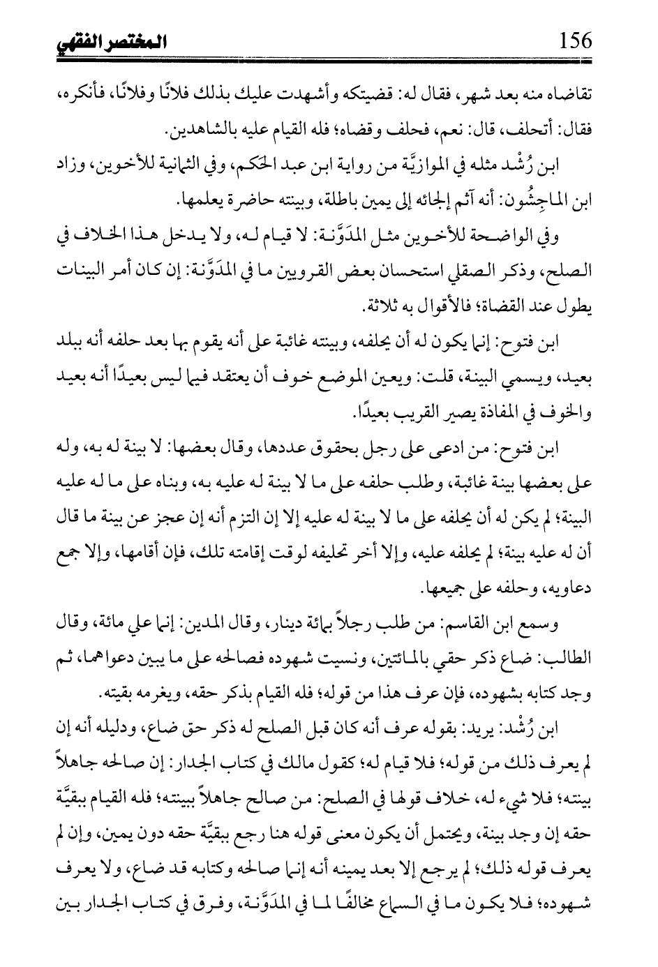 ابن فتوح: من ادعى على رجل بحقوق عددها، وقال بعضها: لا بينة له به، وله على بعضها بينة غائبة، وطلب حلفه على ما لا بينة له عليه به، وبناه على ما له عليه البينة؛ لم يكن له أن يحلفه على ما لا بينة له عليه إلا إن التزم أنه إن عجز عن بينة ما قال أن له عليه بينة؛ لم يحلفه عليه، وإلا أخر تحليفه لوقت إقامته تلك، فإن أقامها، وإلا جمع دعاوزيه، وحلفه على جميعها.