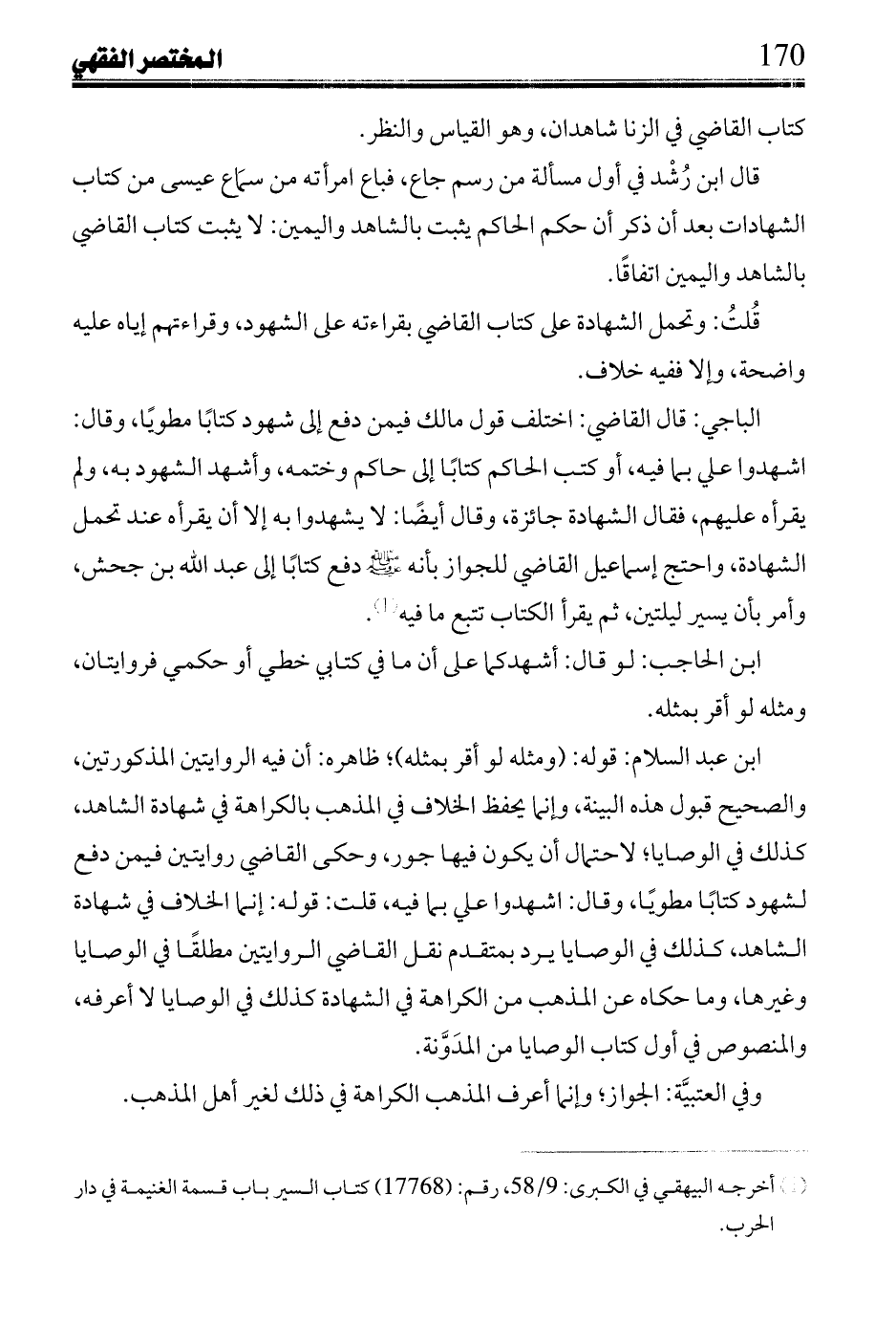 كتاب القاضي في الزنا شاهدان، وهو القياس والنظر.