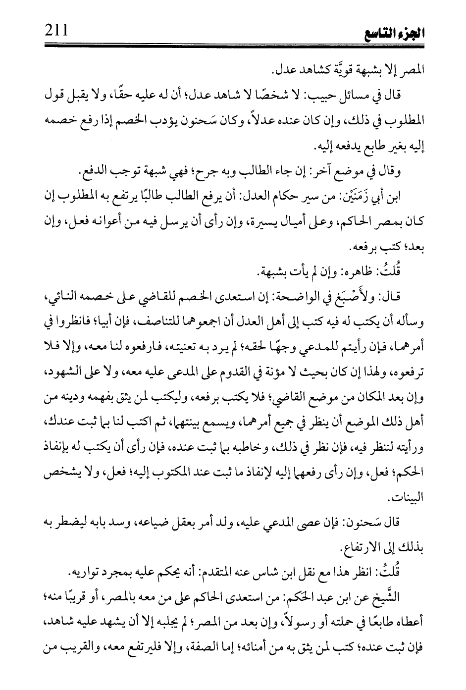 قال: ولأصبع في الواضحة: إن استعدى الخصم للقاضي على خصمه النائي، وسأله أن يكتب له فيه كتب إلى أهل العدل أن أجمعوهما للتناصف، فإن أبيا، فانظروا في أمرهما، فإن رأيتم للمدعي وجهًا لحقه؛ لم يرد به تعنيته، فارفعوه لنا معه، وإلا فلا ترفعوه، ولهذا إن كان بحيث لا مؤنة في القدوم على المدعى عليه، ولا على الشهود، وإن بعد المكان من موضع القاضي؛ فلا يكتب برفعه، وليكتب لمن يثق بفهمه ودينه من أهل ذلك الموضع أن ينظر في جميع أمرها، ويسمع بينتهما، ثم اكتب لنا بما ثبت عندك، ورأيته لننظر فيه، فإن في ذلك، وخاطبه بما ثبت عنده، فإن رأى أن يكتب له بإنفاذ الحكم؛ فعل، وإن رأى رفعهما إليه لإنفاذ ما ثبت عند المكتوب إليه؛ فعل، ولا يشخص البينات.