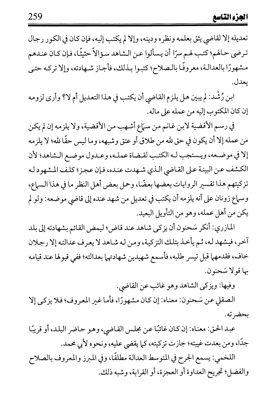 ابن رُشْد: لم يبين هل يلزم القاضي أن يكتب في هذا التعديل أم لا؟ وأرى لزومه إن كان المكتوب إليه من عمله على ماله.