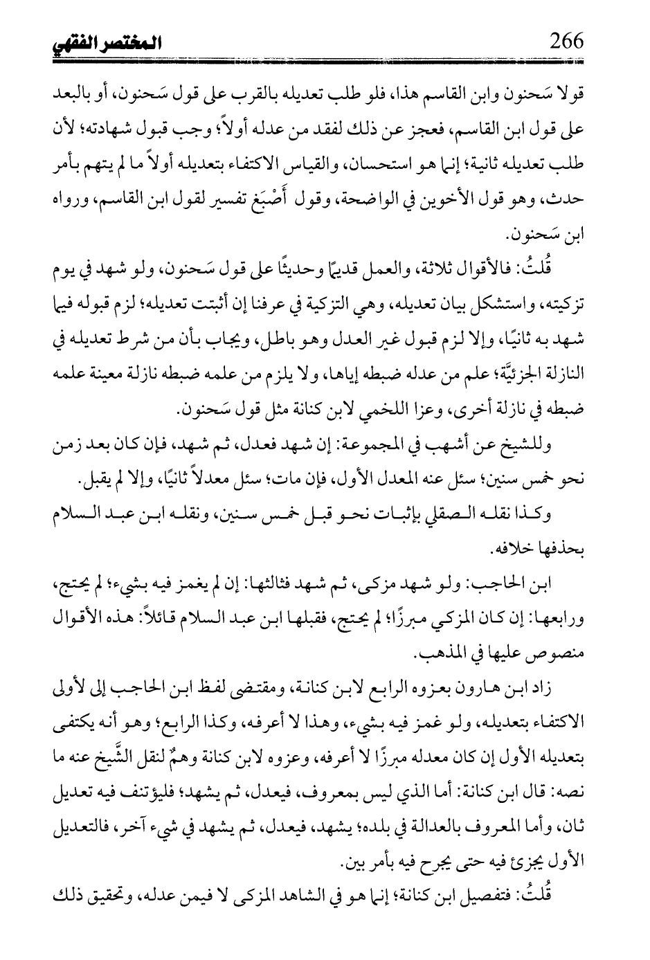قُلتُ: فالأقوال ثلاثة، والعدل قديمًا وحديثًا على قول سَحنون، ولو شهد في يوم تزكيته، واستشكل بيان تعديله، وهي التزكية في عرفنا إن أثبت تعديله؛ لزم قبوله فيما شهد به ثانيًا، وإلا لزم قبول غير العدل وهو باطل، ويجاب بأن من شرط تعديله في النازلة الجزئيَّة؛ علم من عدله ضبطه إياها، ولا يلزم من علمه ضبطه نازلة معينة علمه ضبطه في نازلة أخرى، وعزا اللخمي لابن كنانة مثل قول سَحنون.
