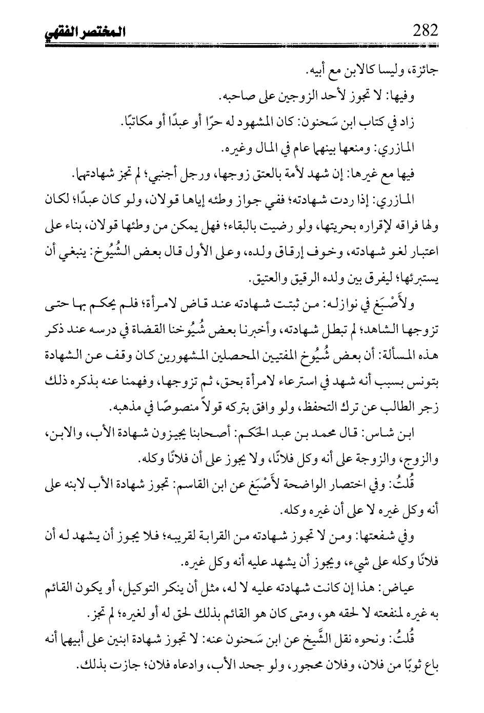 زاد فى كتاب سحنون: كان المشهود له حرا أو عبدا أو مكاتبا.