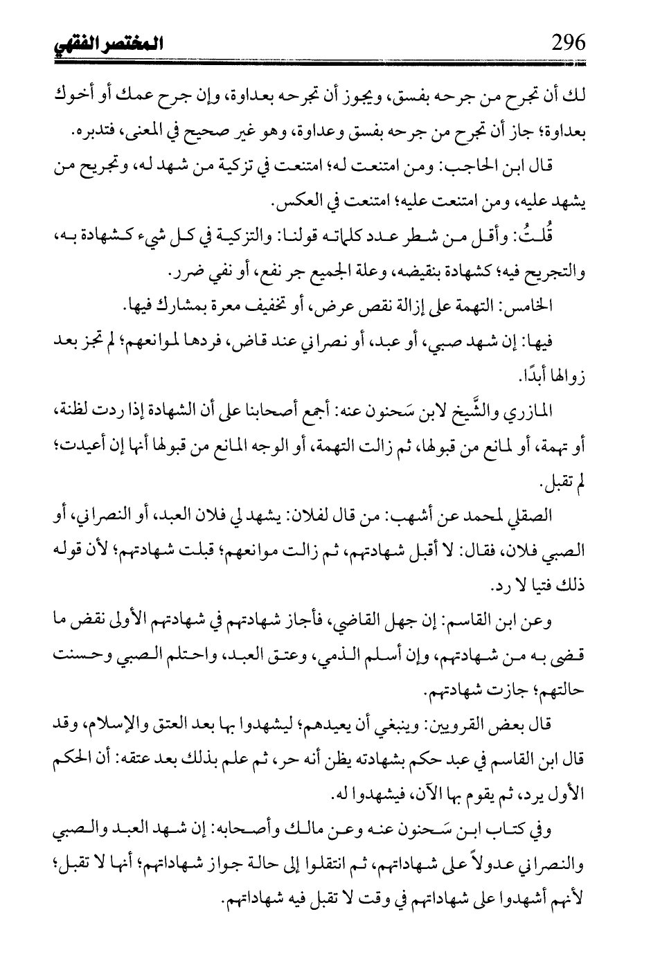 قال ابن الحاجب: ومن امتنعت له؛ امتنعت فى تزكية من شهد له، وتجريح من يشهد عليه، ومن امتنعت عليه؛ امتنعت فى العكس.