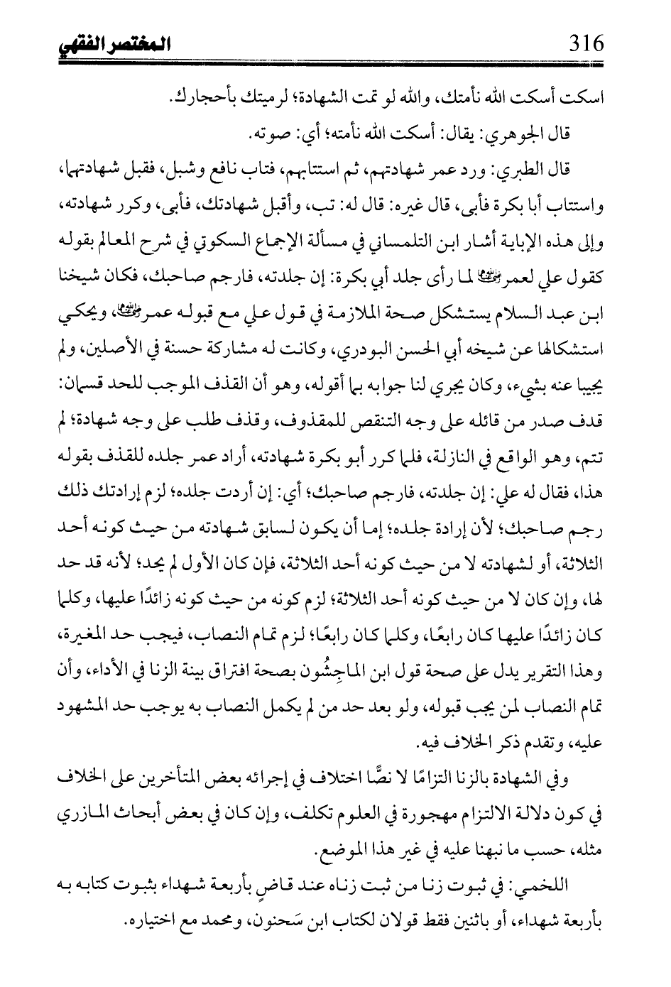 قال الطبري: ورد عمر شهادتهم، ثم استتابهم، فتاب نافع وشبل، فقبل شهادتهما، واستتاب أبا بكرة فأبى، قال غيره: قال له: تب، واقبل شهادتك، فأبى، وكرر شهادته، وإلى هذه الإباية أشار ابن التلمساني في مسألة الإجماع السكوتي في شرح المعالم بقوله كقول علي لعمر رضى الله عنهما لما رأى جلد أبي بكرة: إن جلدته، فارجم صاحبك، فكان شخينا ابن عبد السلام يستشكل صحة الملازمة في قول علي مع قبوله عمر رضى الله عنهما، ويحكي استشكالها عن شيخه أبي الحسن البودري، وكانت له مشاركة حسنة في الأصلين، ولم يجيبا عنه بشئ، وكان يجري لنا جوابه بما اقوله، وهو أن القذف الموجب للحد قسمان: قدف صدر من قائله على وجه التنقص للمقذوف، وقذف طلب على وجه شهادة؛ لم تتم، وهو الواقع في النازلة، فما كرر أبو بكرة شهادته، أراد عمر جلده للقذف بقوله هذا، فقاله له علي: إن جلدته، فارجم صاحبك؛ أي: إن أردت جلده؛ لزم إرادتك ذلك رجم صاحبك؛ لأن إراده جلده؛ إما أن يكون لسابق شهادته من حيث كونه أحد الثلاثة، أو لشهادته لا من حيث كونه أحد الثلاثة، فإن كان الأول لم يحد؛ لأنه قد حد لها، وإن كان لا من حيث كونه أحد الثلاثة؛ لزم كونه من حيث كونه زائداً عليها، وكلما كان زائداً عليها كان رابعاً، وكلما كان رابعاً؛ لزم تمام النصاب، فيجب حد المغيرة، وهذا التقرير يدل عى صحة قول ابن الماجشون بصحة افتراق بينة الزنا في الأداء، وأن عليه، وتقدم ذكر الخلاف فيه.
