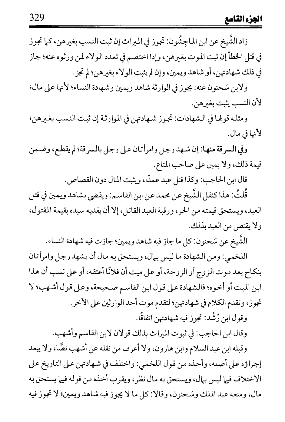 الشيخ عن سحنون: كل ما جاز فيه شاهد ويمين؛ جازت فيه شهادة النساء.