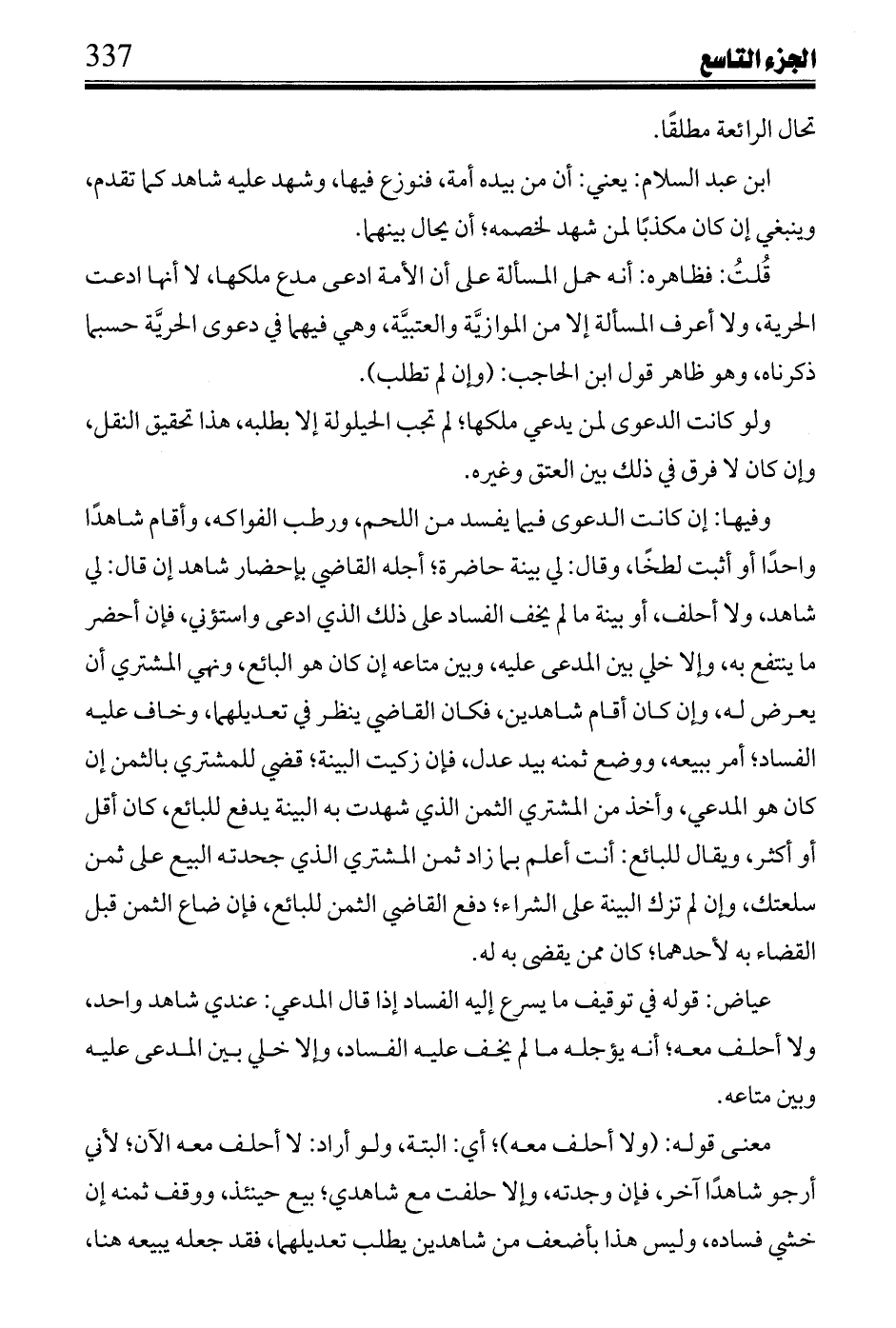 عياض: قوله في توقيف ما يسرع إليه الفساد إذا قال المدعي: عندي شاهد واحد، ولا أحلف معه؛ أنه يؤجله ما لم يخف عليه الفساد، وإلا خلي بين المدعي عليه وبين متاعه.