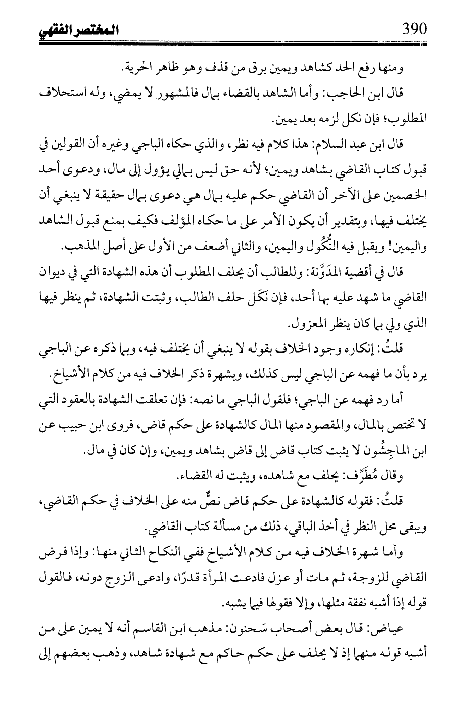 أما رد فهمه عن الباجي؛ فلقول الباجي ما نصه: فإن تعلقت الشاهدة بالعقود التي لا تختص بالمال، والمقصود منها المال كالشهادة على حكم قاض، فروى ابن حبيب عن الماجشون لايثبت كتاب قاض إلى قاض بشاهد ويمين، وإن كان في مال.