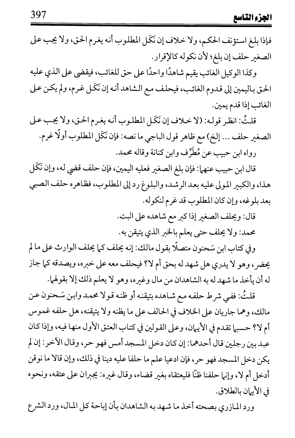 قلت: انظر قوله: (لا خلاف إن نكل المطلوب انه يغرم الحق، ولا يجب على الصغير حلف ... إلخ) مع ظاهر قول الباجي ما نصه: فإن نكل المطلوب أولاً غرم.