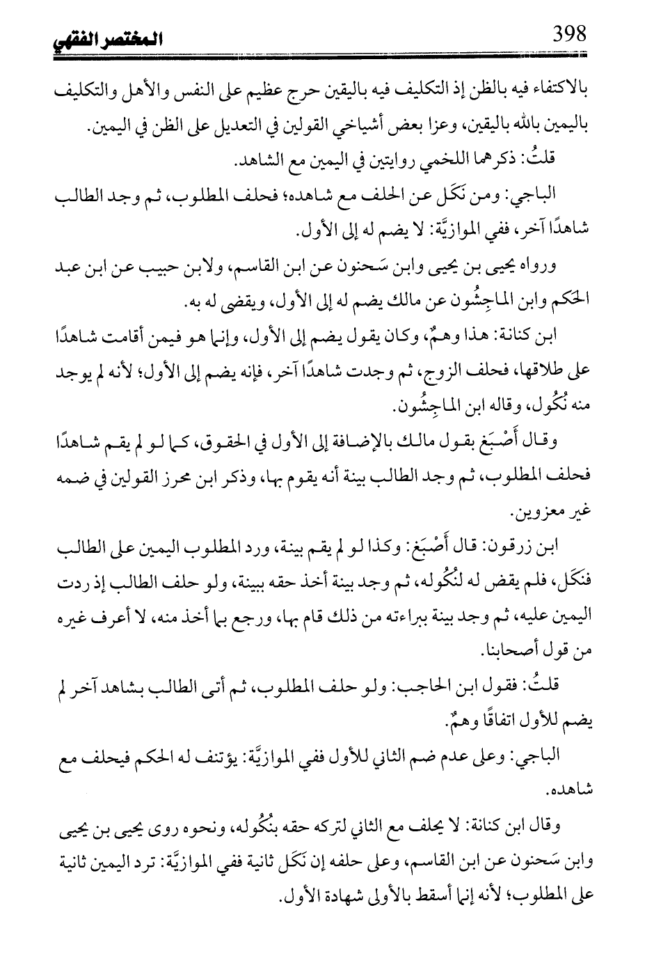 ابن كنانة: هذا وهم، وكان يقول يضم إلى الأول، وإنما هو فيمن أقامت شاهداً على طلاقها، فحلف الزوج، ثم وجدت شاهداً آخر، فإنه يضم إلى الأول؛ لأنه لم يوجد منه نكول، وقاله ابن الماجشون.