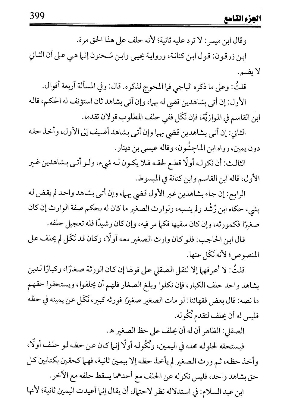 قلت: لا أعرفها إلا لنقل الصقلي على قولها إن كان الورثة صغاراً، وكباراً لدين بشاهد واحد حلف الكبار، فإن نكلوا وبلغ الصغار فلهم أن يحلفوا، ويستحقوا حقهم ما نصه: قال بعض فقهائنا: لو مات الصغير صغيراً فورثه كبير، نكل عن يمينه في حظه فليس له أن يحلف لتقدم نكوله.