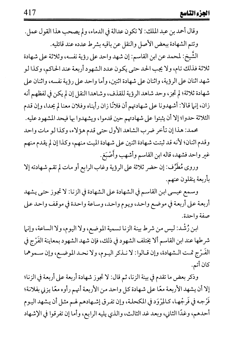 وقال أحمد بن عبد الملك: لا تكون عدالة في الدماء، ولم يصحب هذا القول عمل.