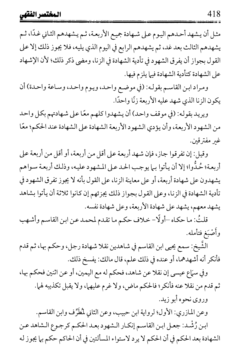 ابن رشد: جعل ابن القاسم إنكار الشهود بعد الحكم كرجوع الشاهد عن الشهادة بعد الحكم في أن الحكم لا يرد لاستواء المسألتين في أن الحاكم حكم بما يجوز له