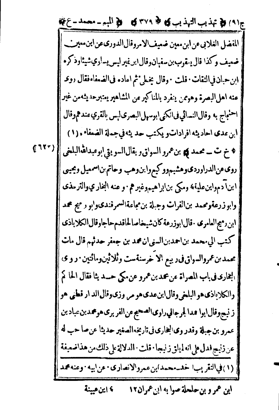 1 في التقريب "خد – محمد" بن عمرو الأنصاري عن أبيه وعنه محمد بن عمرو بن حلحلة صوابه ابن عمران 12