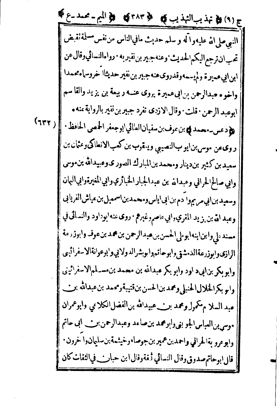 634 – " د عس – محمد" بن عوف بن سفيان الطائي أبو جعفر الحمصي الحافظ روى عن موسى بن أيوب النصيبي ويعقوب بن كعب الأنطاكي وعثمان بن سعيد بن كثير بن دينار ومحمد بن المبارك الصوري وعبيد الله بن موسى وأبي صالح الحراني وعبد الله بن عبد الجبار الخبائري وأبي المغيرة وأبي اليمان وسعيد بن أبي مريم وآدم بن أبي إياس ومحمد بن إسماعيل بن عياش الفريابي وعبد الله بن يزيد المقري وأبي عاصم وغيرهم روى عنه أبو داود والنسائي في مسند علي وابن ابنه أبو علي الحسن بن عبد الرحمن بن محمد بن عوف وأبو زرعة الرازي وأبو زرعة الدمشقي وأبو حاتم وأبو بشر الدولابي وأبو عوانة الإسفرائيني وأبو بكر بن أبي داود وأبو بكر عبد الله بن محمد بن مسلم الإسفرائيني وأبو بكر الخلال الحنبلي ومحمد بن الحسن بن قتيبة ومحمد بن عبد الله بن عبد السلام مكحول ومحمد بن عبيد الله بن الفضل الكلاعي وأبو عمران موسى بن العباس الجويني وأبو محمد بن صاعد وعبد الرحمن بن أبي حاتم وأبو عروبة الحراني وأحمد بن عمير بن جوصاء وخيثمة بن سليمان وآخرون قال أبو حاتم صدوق وقال النسائي ثقة وقال بن حبان في الثقات كان