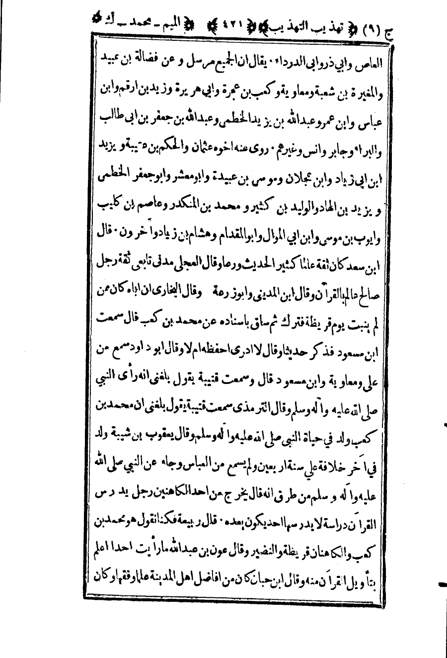 العاص وأبي ذر وأبي الدرداء يقال أن الجميع مرسل وعن فضالة بن عبيد والمغيرة بن شعبة ومعاوية وكعب بن عجرة وأبي هريرة وزيد بن أرقم وابن عباس وابن عمر وعبد الله بن يزيد الخطمي وعبد الله بن أبي طالب والبراء وجابر وأنس وغيرهم روى عنه أخوه عثمان والحكم بن عيينة ويزيد بن أبي زياد وابن عجلان وموسى بن عبيدة وأبو معشر وأبو جعفر الخطمي ويزيد بن الهاد والوليد بن كثير ومحمد بن المنكدر وعاصم بن كليب وأيوب بن موسى وابن أبي الموال وأبو المقداد وهشام بن زياد وآخرون قال بن سعد كان ثقة عالما كثير الحديث ورعا وقال العجلي مدني تابعي ثقة رجل صالح عالم بالقرآن وقال بن المديني وأبو زرعة وقال البخاري أن أباه كان ممن لم ينبت يوم قريظة فترك ثم ساق بإسناده عن محمد بن كعب قال سمعت بن مسعود فذكر حديثا وقال لا أدري أحفظه أم لا وقال أبو داود سمع من علي ومعاوية وابن مسعود قال وسمعت قتيبة يقول بلغني أنه رأى النبي صلى الله عليه وسلم وقال الترمذي سمعت قتيبة يقول بلغني أن محمد بن كعب ولد في حياة النبي صلى الله عليه وسلم وقال يعقوب بن شيبة ولد في آخر خلافة علي سنة أربعين ولم يسمع من العباس وجاء عن النبي صلى الله عليه وسلم من طرق أنه قال يخرج من أحد الكاهنين رجل يدرس القرآن دراسة لا يدرسها أحد يكون بعده قال ربيعة فكنا نقول هو محمد بن كعب والكاهنان قريظة والنضير وقال عون بن عبد الله ما رأيت أحدا أعلم بتأويل القرآن منه وقال بن حبان كان من أفاضل أهل المدينة علما وفقها وكان
