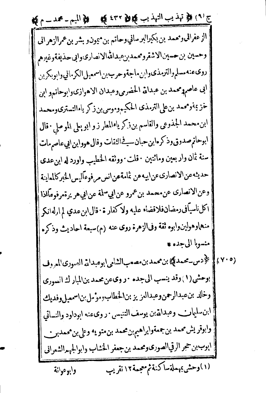 707 – "د س – محمد" بن محمد بن مصعب الشامي أبو عبد الله الصوري المعروف بوحشي1 وقد ينسب إلى جده روى عن محمد بن المبارك الصوري وخالد بن عبد الرحمن وعبد العزيز بن الخطاب ومؤمل بن إسماعيل وفديك بن سليمان وعبد الله بن يوسف التنيسي روى عنه أبو داود والنسائي وأبو قريش محمد بن جمعة وإبراهيم بن محمد بن متويه وعلي بن محمد بن أيوب بن حجر الرقي الصوري ومحمد بن جعفر الخشاب وأبو الجهم الشعراني