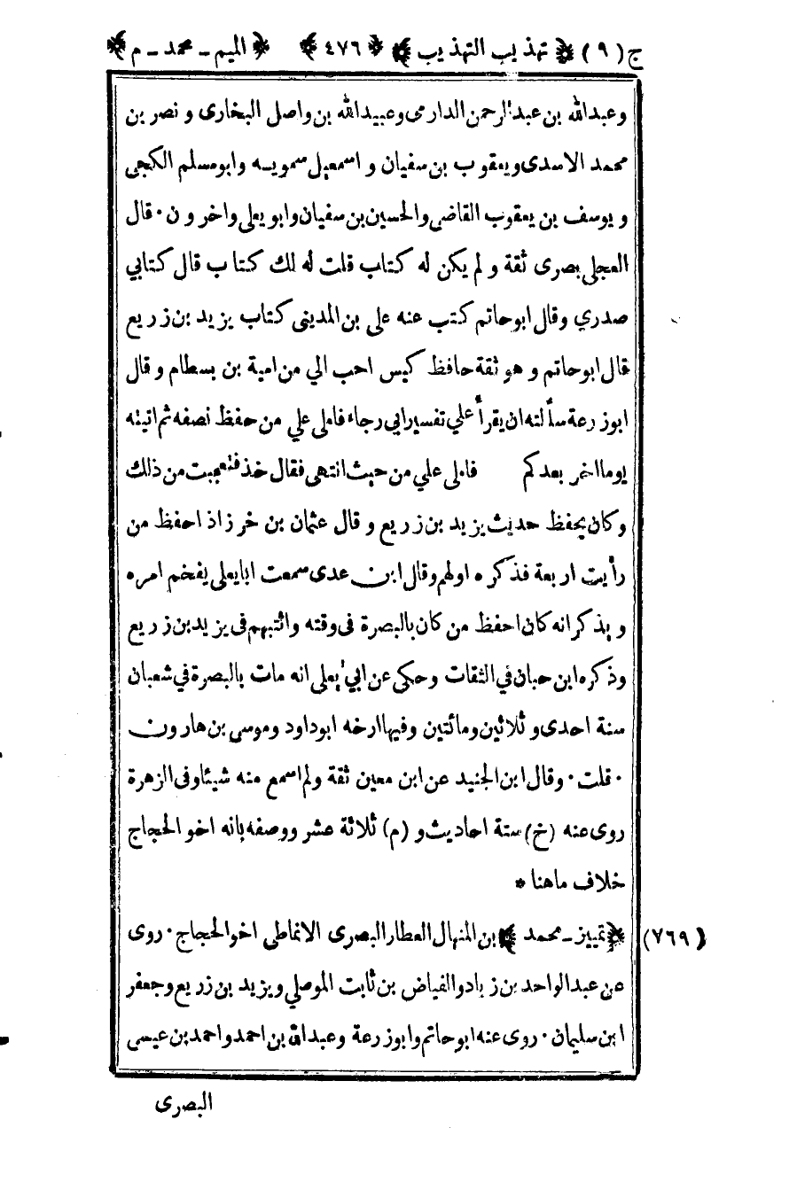 771 – "تمييز – محمد" بن المنهال العطار البصري الأنماطي أخو الحجاج روى عن عبد الواحد بن زياد والفياض بن ثابت الموصلي ويزيد بن زريع وجعفر بن سليمان روى عنه أبو حاتم وأبو زرعة وعبد الله بن وأحمد بن عيسى
