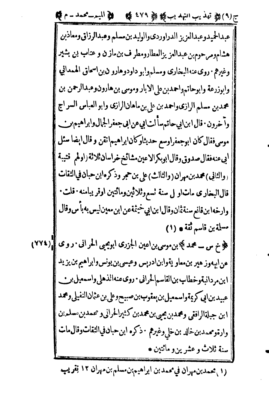 1 محمد بن مهران في محمد بن إبراهيم بن مسلم بن مهران 12 تقريب