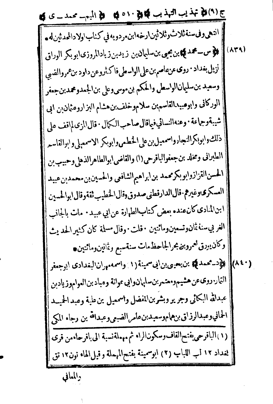 842 – "د – محمد" بن يحيى بن أبي سمينة2 واسمه مهران البغدادي أبو جعفر التمار روى عن هشيم ومعتمر بن سليمان وأبي عوانة وعباد بن العوام وزياد بن عبد الله البكائي وجرير وبشر بن المفضل وإسماعيل بن علية وعبد الحميد الحماني وعبد الرزاق بن همام وسعيد بن عامر الضبعي وعبد الله بن رجاء المكي