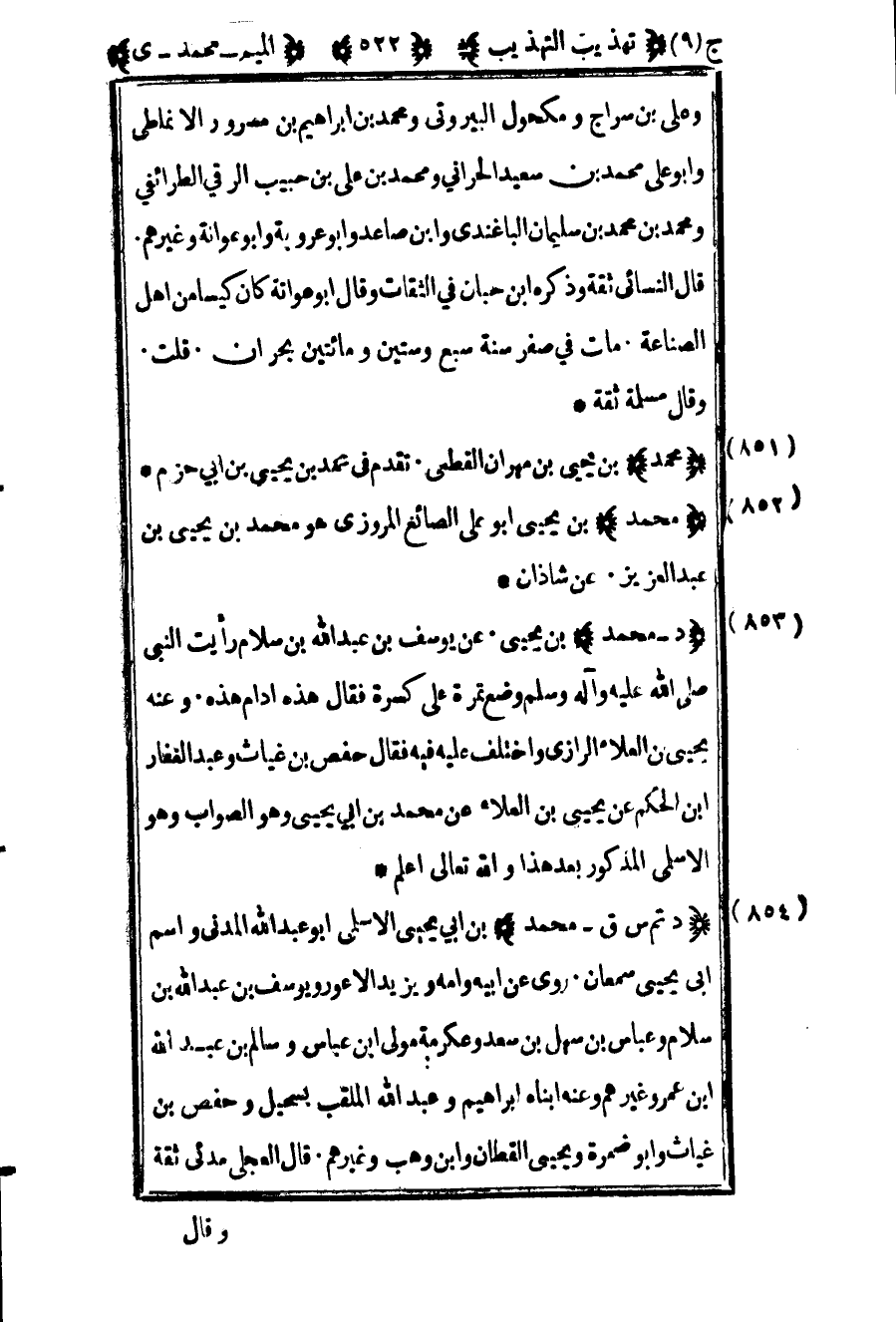853 – "محمد" بن يحيى بن مهران القطعي تقدم في محمد بن يحيى بن أبي حزم عن شاذان