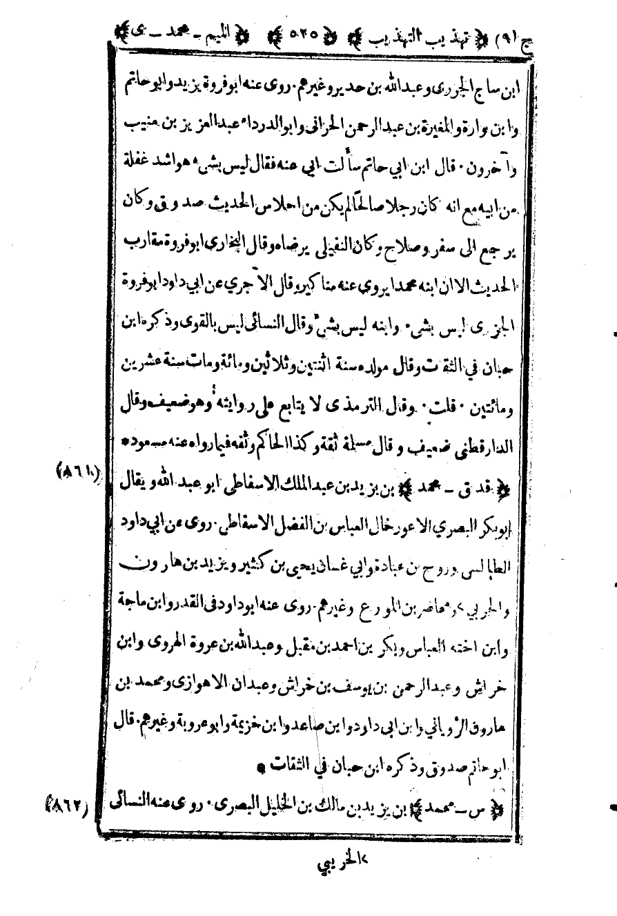 864 – "س – محمد" بن يزيد بن مالك بن الخليل البصري روى عنه النسائي