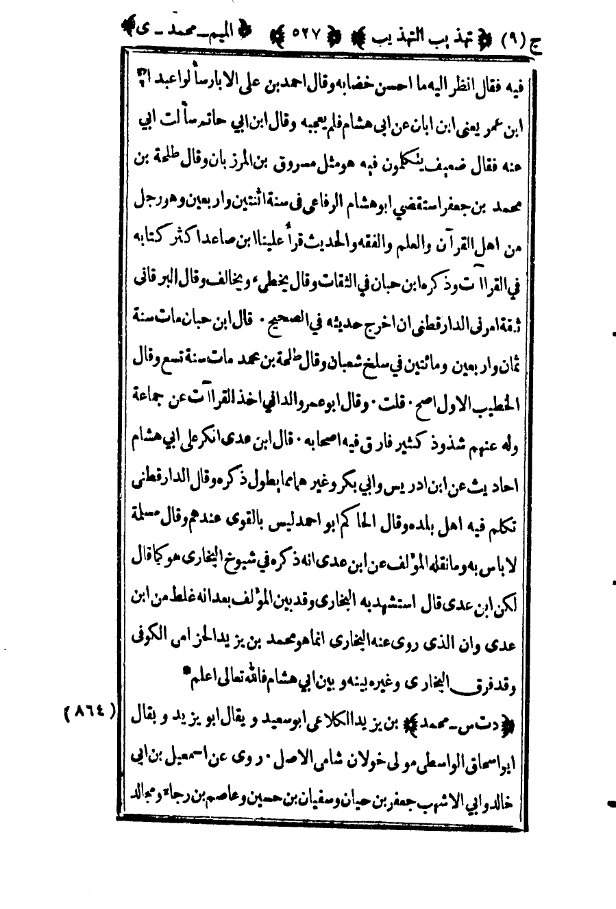 فيه فقال أنظر إليه ما أحسن خضابه وقال أحمد بن علي الآبار سألوا عبد الله بن عمر يعني بن أبان عن أبي هشام فلم يعجبه وقال بن أبي حاتم سألت أبي عنه فقال ضعيف يتكلمون فيه هو مثل مسروق بن المرزبان وقال طلحة بن محمد بن جعفر استقضي أبو هشام الرفاعي في سنة اثنتين وأربعين وهو رجل من أهل القرآن والعلم والفقه والحديث قرأ علينا بن صاعد أكثر كتابة في القراءات وذكره بن حبان في الثقات وقال يخطىء ويخالف وقال البرقاني ثقة أمرني الدارقطني أن أخرج حديثه في الصحيح قال بن حبان مات سنة ثمان وأربعين ومائتين في سلخ شعبان وقال طلحة بن محمد مات سنة تسع وقال الخطيب الأول أصح قلت وقال أبو عمرو الداني أخذ القراءات عن جماعة وله عنهم شذوذ كثير فارق فيه أصحابه قال بن عدي أنكر على أبي هشام أحاديث عن بن إدريس وأبي بكر وغيرهما مما يطول ذكره وقال الدارقطني تكلم فيه أهل بلده وقال الحاكم أبو أحمد ليس بالقوي عندهم وقال مسلمة لا بأس به وما نقله المؤلف عن بن عدي أنه ذكره في شيوخ البخاري هو كما قال لكن بن عدي قال استشهد به البخاري وقد بين المؤلف بعد أنه غلط من بن عدي وأن الذي روى عنه البخاري إنما هو محمد بن يزيد الحزامي الكوفي وقد فرق البخاري وغيره بينه وبين أبي هشام فالله تعالى أعلم