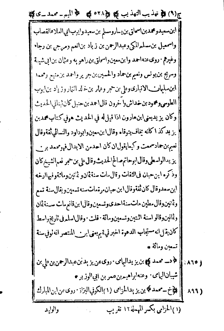 868 – "خ – محمد" بن يزيد الحزامي1 الكوفي البزاز روى عن بن المبارك