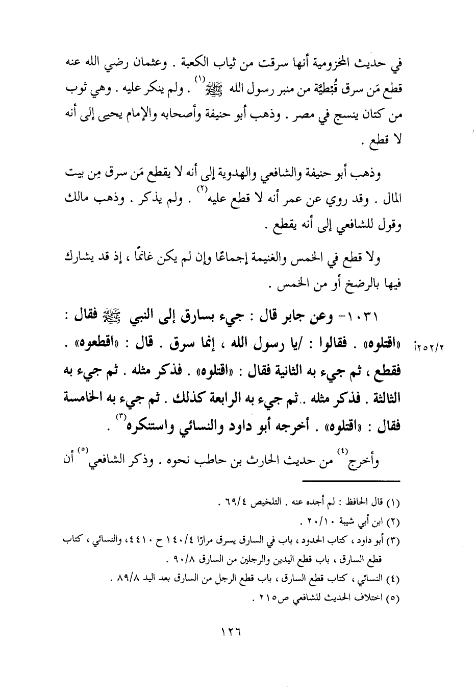 (¬3) أبو داود، كتاب الحدود، باب في السارق يسرق مرارًا 4/ 140 ح 4410، والنسائي، كتاب قطع السارق، باب قطع اليدين والرجلين من السارق 8/ 90.