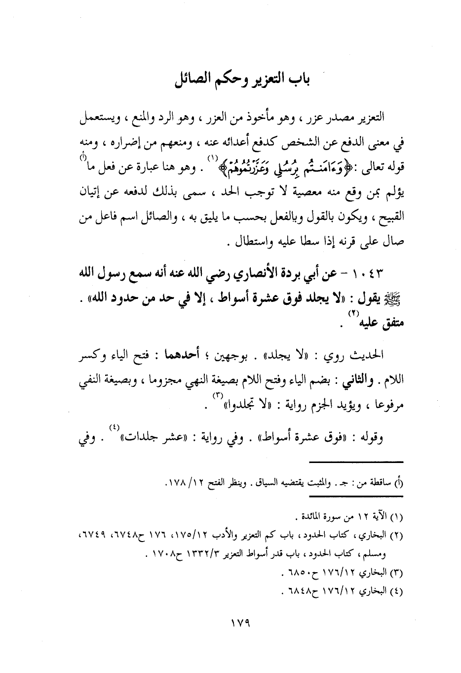 (¬2) البخاري، كتاب الحدود، باب كم التعزير والأدب 12/ 175، 176 ح 6748، 6749، ومسلم، كتاب الحدود، باب قدر أسواط التعزير 3/ 1332 ح 1708.