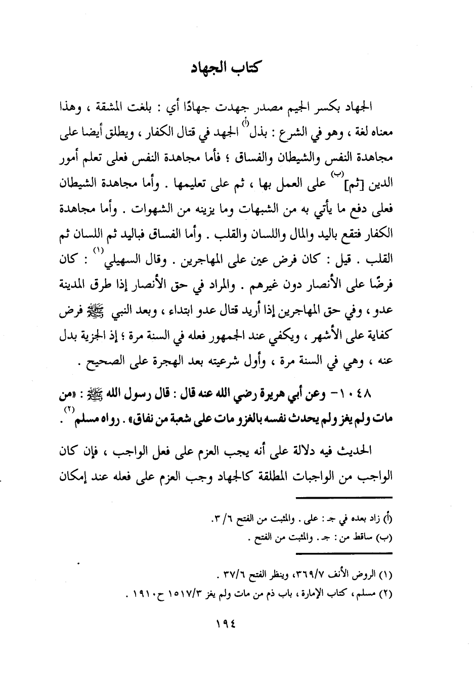 (¬2) مسلم، كتاب الإمارة، باب ذم من مات ولم يغز 3/ 1517 ح 1910.