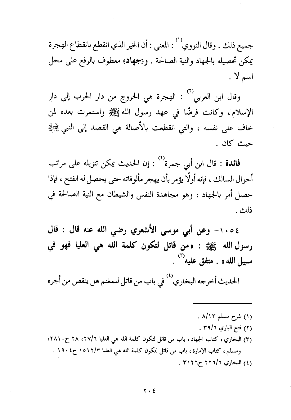 (¬3) البخاري، كتاب الجهاد، باب من قاتل لتكون كلمة الله هي العليا 6/ 27، 28 ح 2810، ومسلم، كتاب الإمارة، باب من قاتل لتكون كلمة الله هي العليا 3/ 1512 ح 1904.