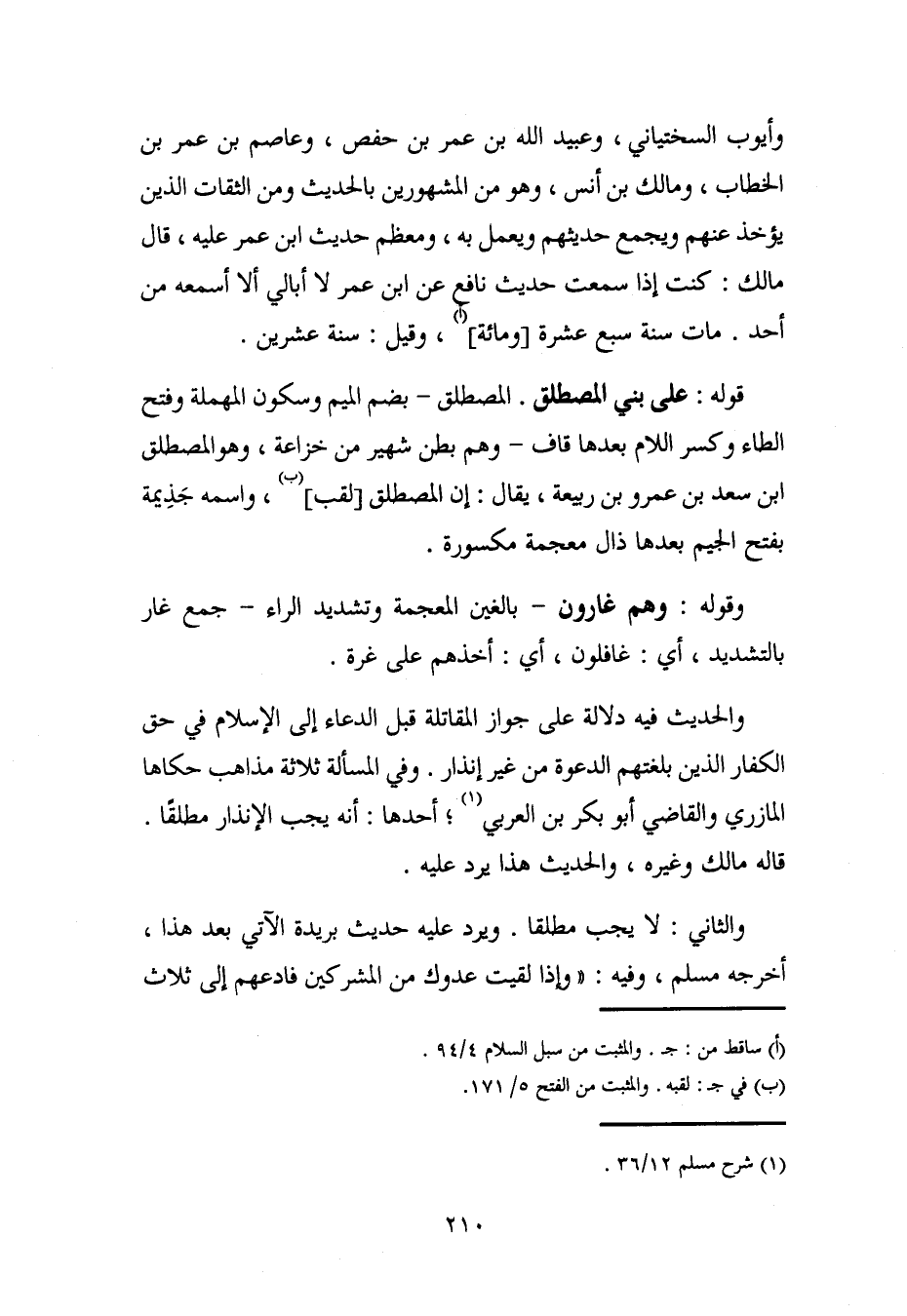 والحديث فيه دلالة على جواز المقاتلة قبل الدعاء إلى الإِسلام في حق الكفار الذين بلغتهم الدعوة من غير إنذار. وفي المسألة ثلاثة مذاهب حكاها المازري والقاضي أبو بكر بن العربي (¬1)؛ أحدها: أنه يجب الإنذار مطلقًا. قاله مالك وغيره، والحديث هذا يرد عليه.
