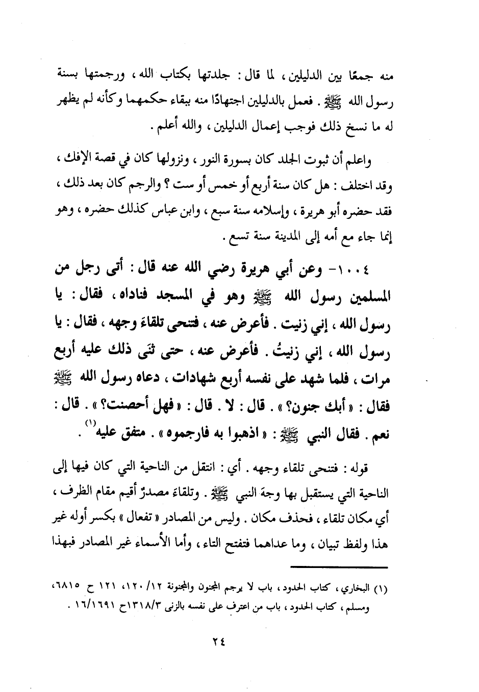 (¬1) البخاري، كتاب الحدود، باب لا يرجم المجنون والمجنونة 12/ 120، 121 ح 6815، ومسلم، كتاب الحدود، باب من اعترف على نفسه بالزنى 3/ 1318 ح 1691/ 16.