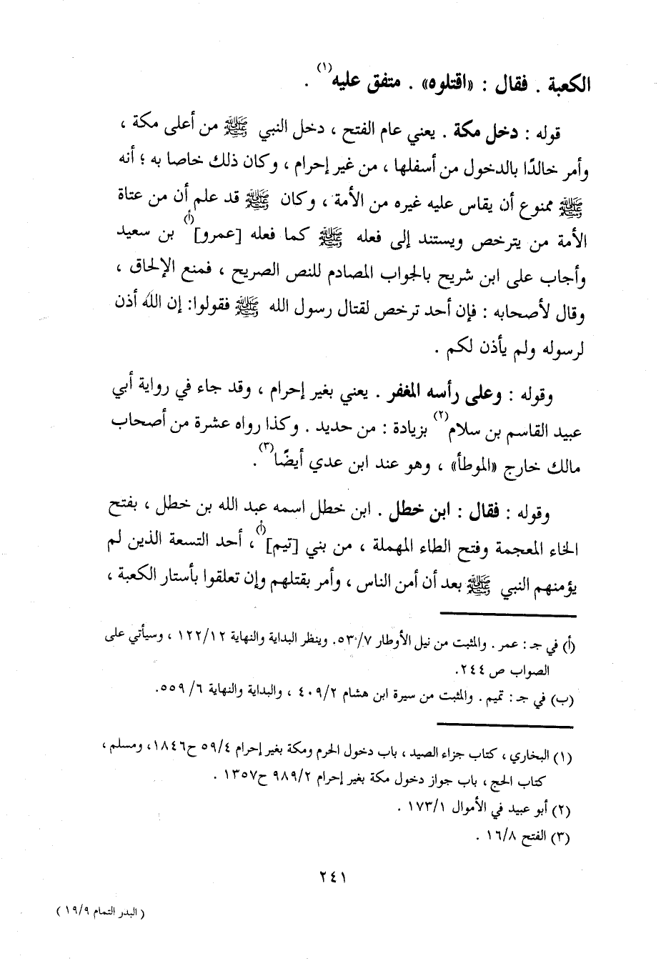 (¬1) البخاري، كتاب جزاء الصيد، باب دخرل الحرم ومكة بغير إحرام 4/ 59 ح 1846، ومسلم، كتاب الحج، باب جواز دخول مكة بغير إحرام 2/ 989 ح 1357.