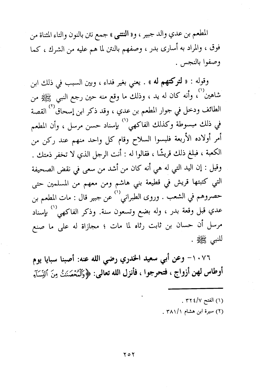 1076 - وعن أبي سعيد الخدري رضي الله عنه: أصبنا سبايا يوم أوطاس لهن أزواج، فتحرجوا، فأنزل الله تعالى: {وَالْمُحْصَنَاتُ مِنَ النِّسَاءِ